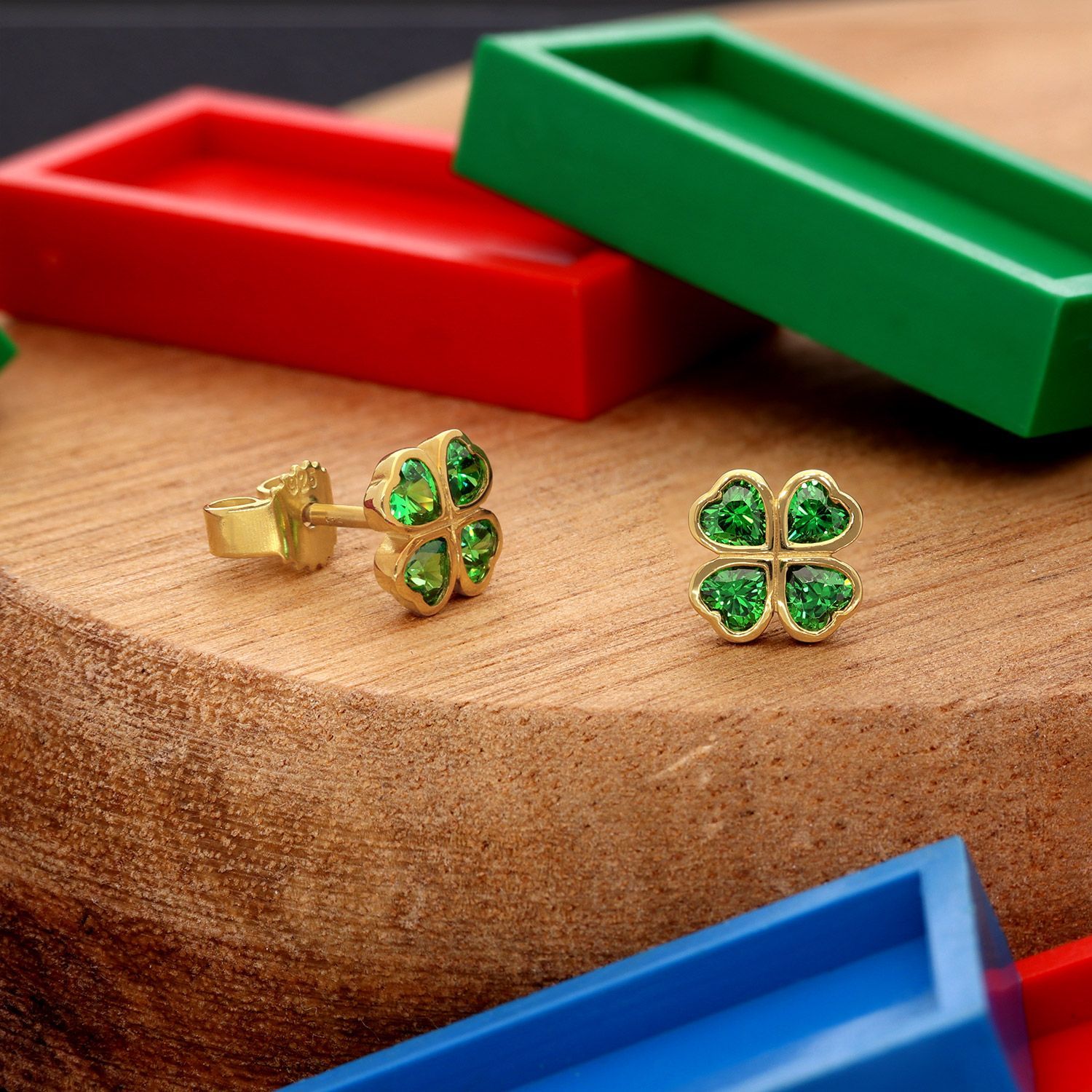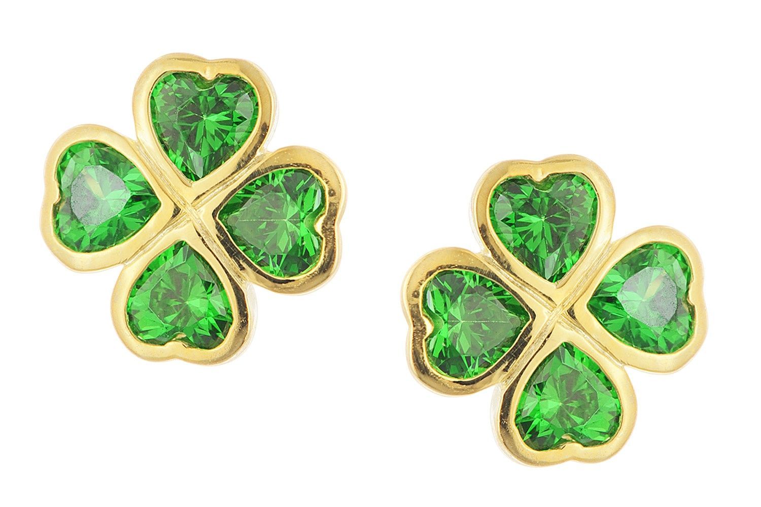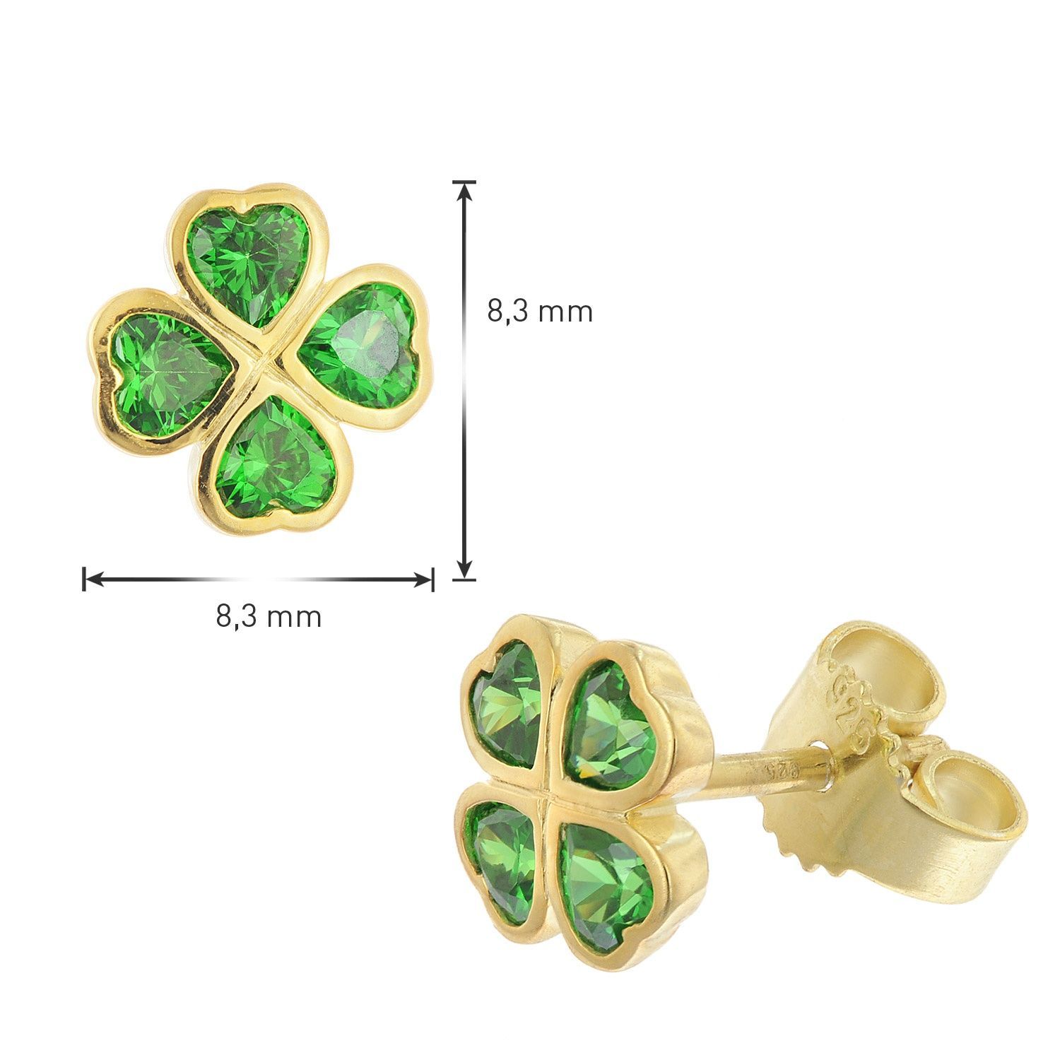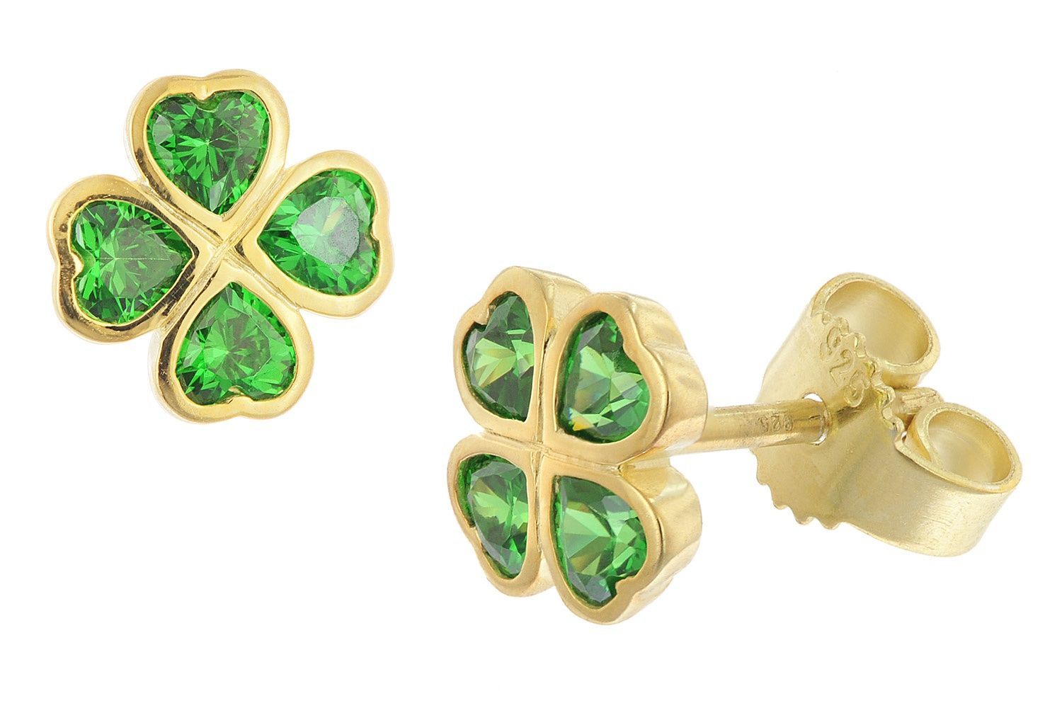 trendor Schmuck Mädchen-Ohrringe 925 Silber Vergoldet Kleeblatt Ohrstecker 21143