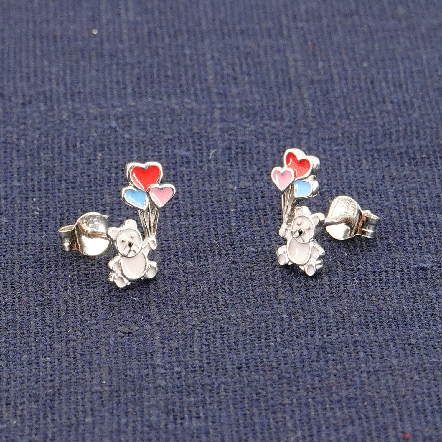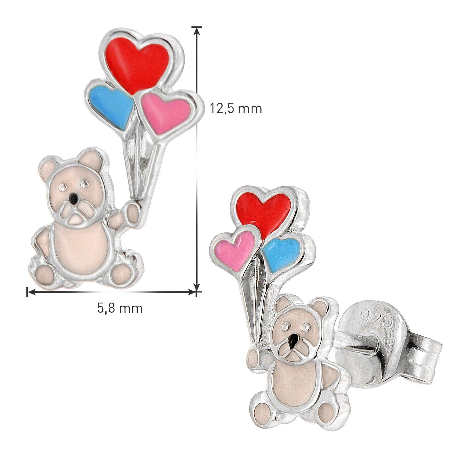 trendor Schmuck Mädchen-Ohrringe Silber 925 Teddy mit Ballons 41651