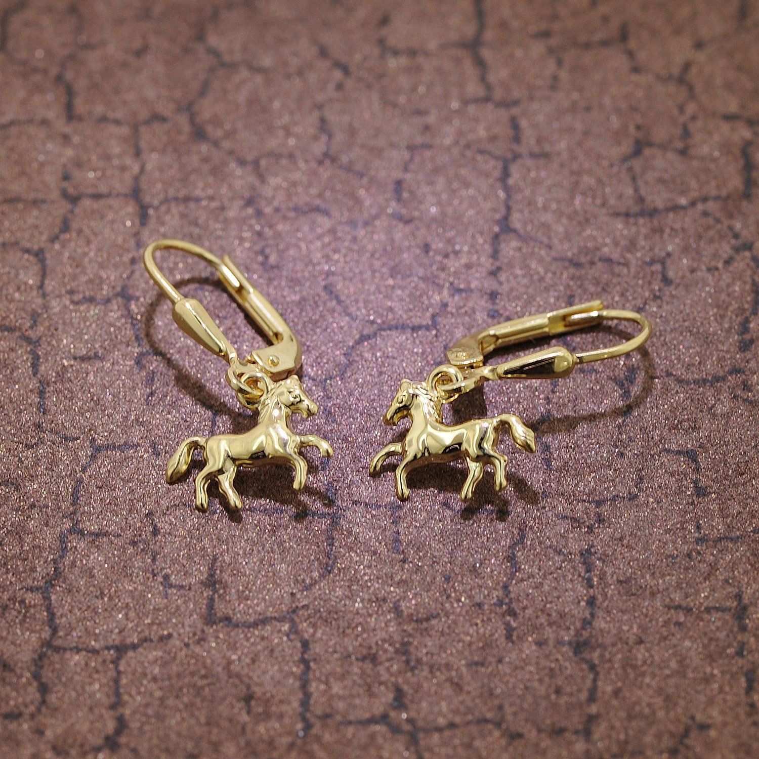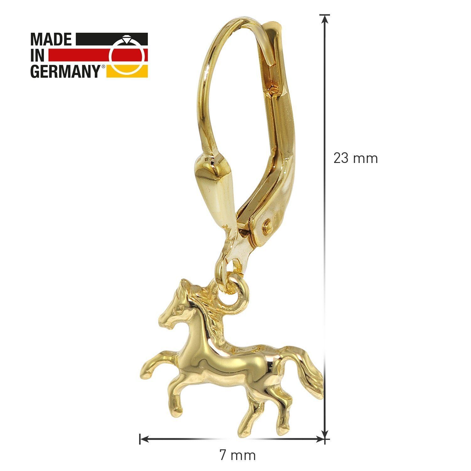 trendor Schmuck Ohrringe für Mädchen Gold 333/8K Pferde Ohrhänger 08485