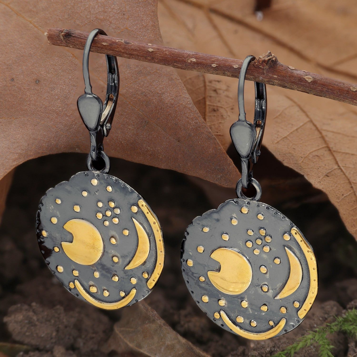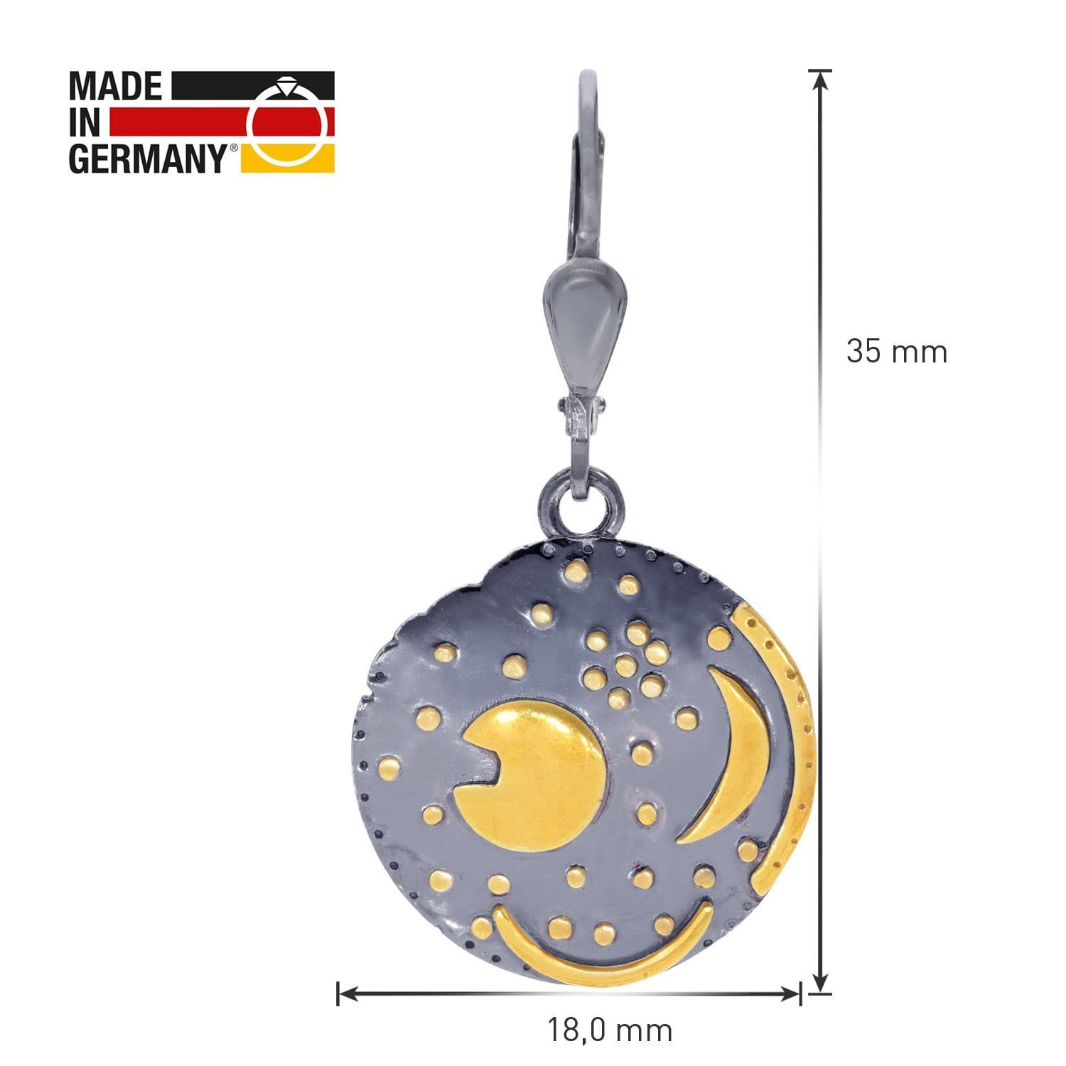 trendor Schmuck Ohrringe Himmelsscheibe von Nebra 925 Silber schwarz/gold ?18 mm 215