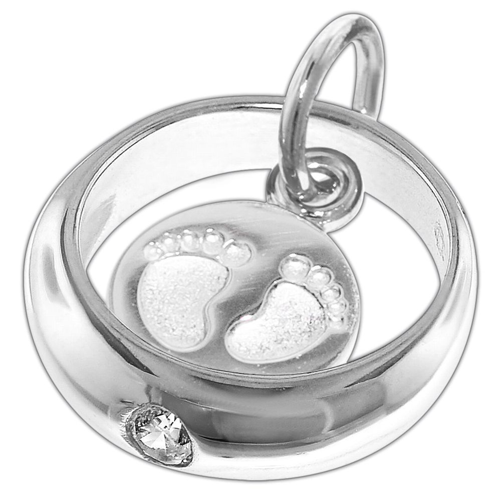 trendor Schmuck Taufkette 925 Silber Taufring mit Anhänger Babyfüße 08467