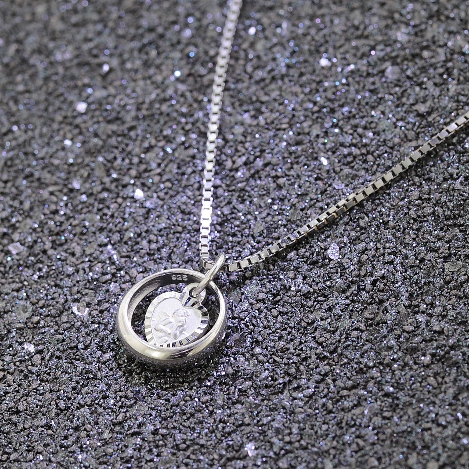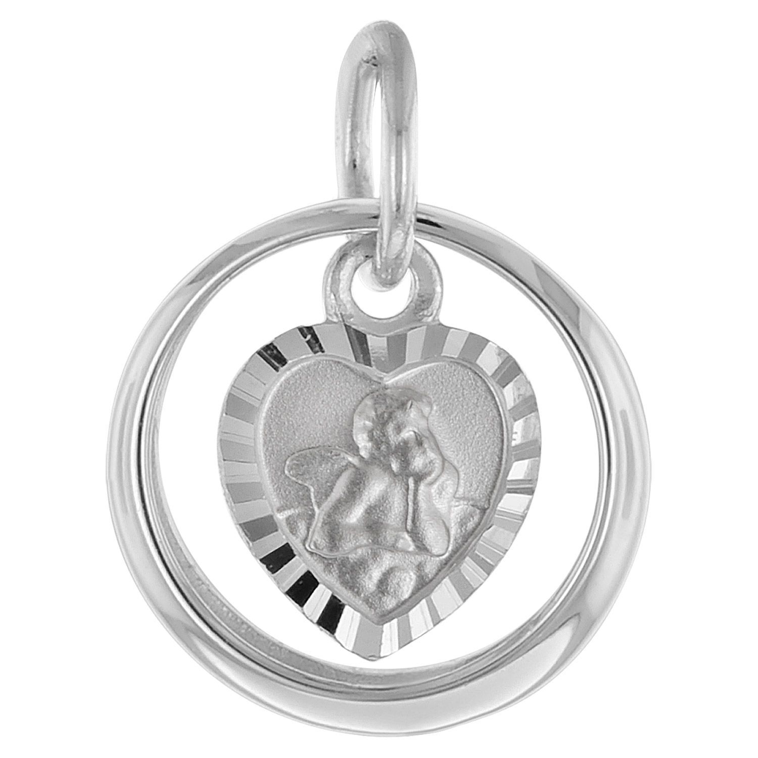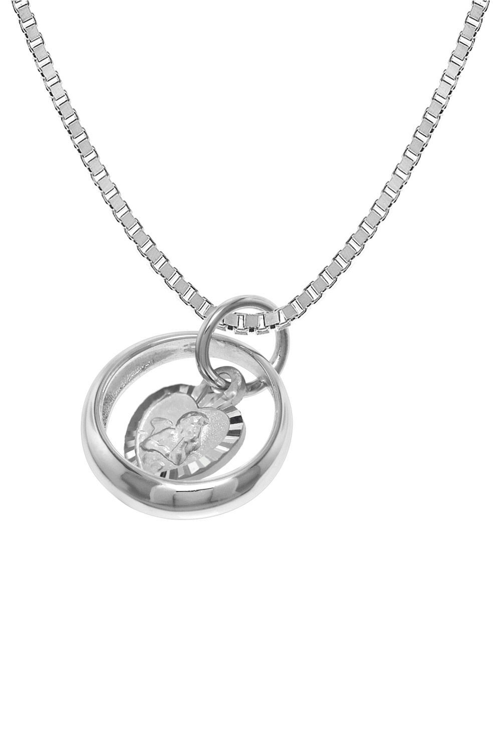 Schmuck-Set für Mutter und Baby, in Sterlingsilber 925, rhodiniert, anlaufgeschützt, Taufring Anhänger mit eingehängtem Amor-Herz, Durchmesser 11 mm, Herz mit Engelmotiv, gesandelt, diamantierter Rand, Venezianer Halskette, Stärke 0,9 mm, Federring-Verschluss, Made in Germany, inklusive einem Mikrofaser-Pflegetuch