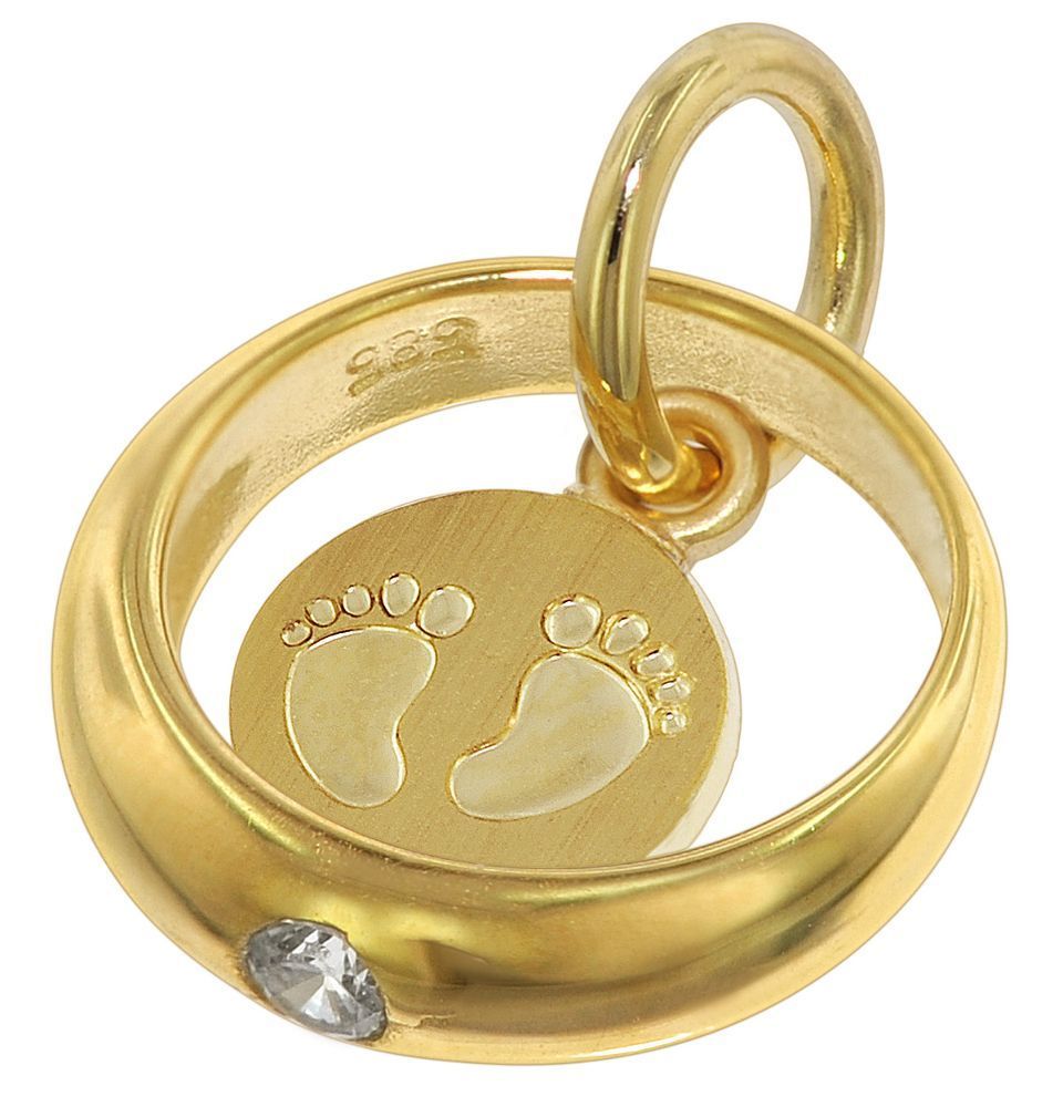 trendor Schmuck Taufring Babyfüße Gold 585 / 14 Karat mit vergoldeter Kette 75395