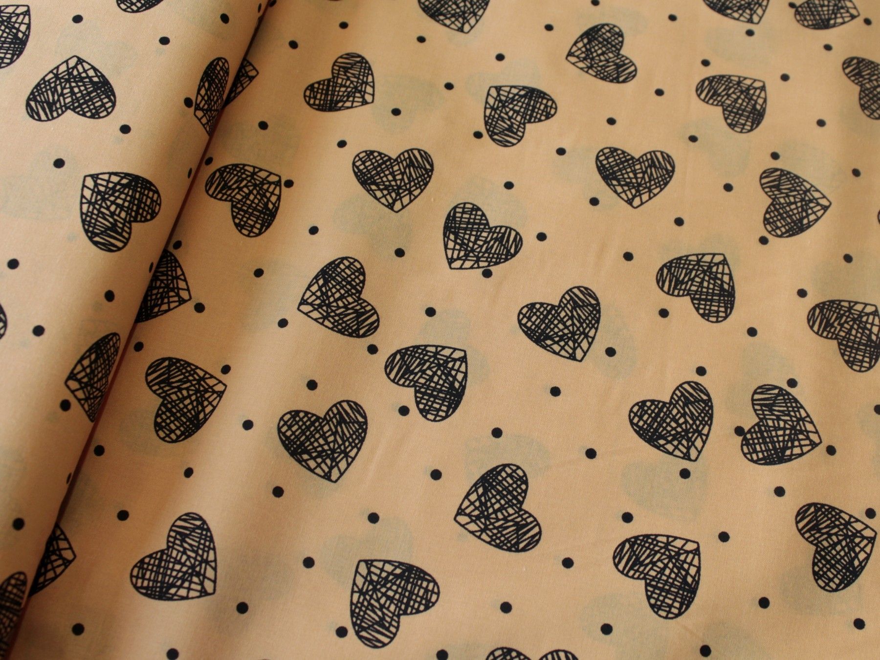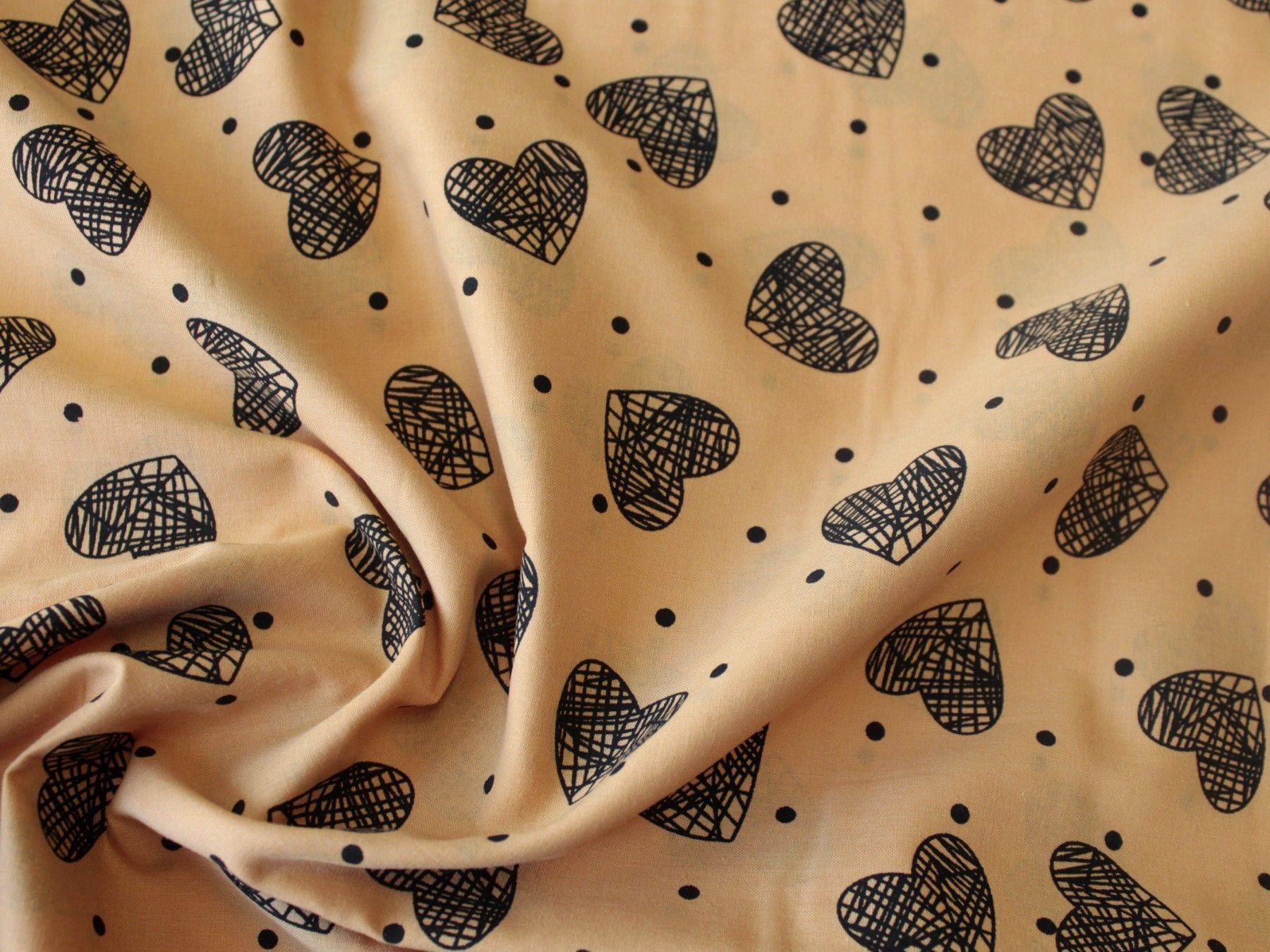 TRENDY Baumwolle-Voilé "Herzen ocker" , Punkten, 0,5m x 1,40 m , Meterware