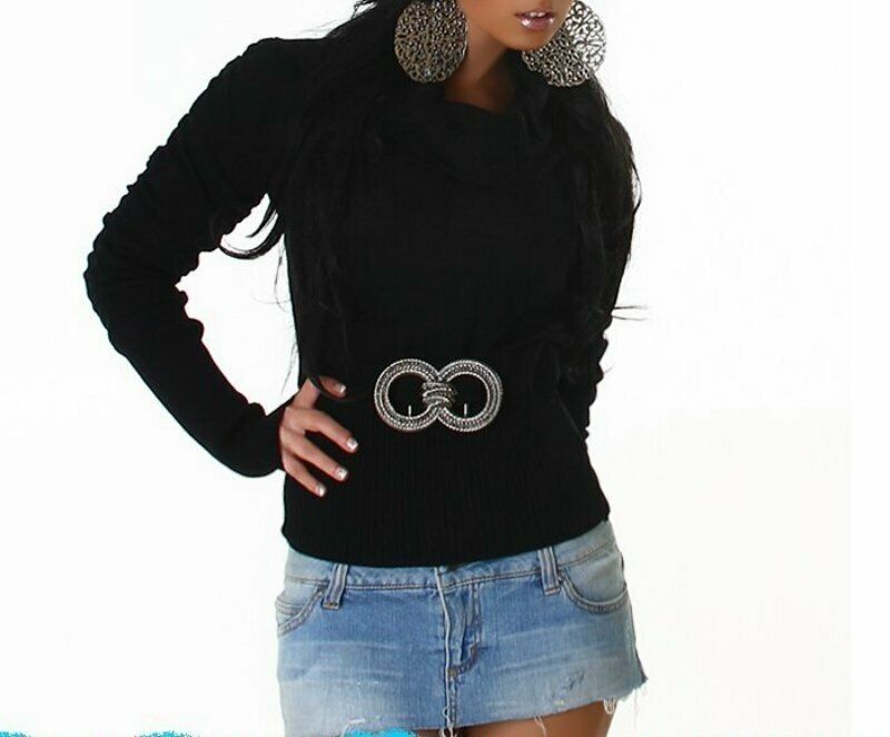 Trendy Strick Rolli Pullover Langarm Pulli mit Rollkragen geraffter Oberarmbereich vorne mit silberfarbener Zierschnalle - Gürtellook Strickmix Desing aus Glattstrick und breiten Rippstrick Abschlüssen Eye Catcher Hot & Sexy In-Style Look _____________________________ Im Artikel steht Französisc