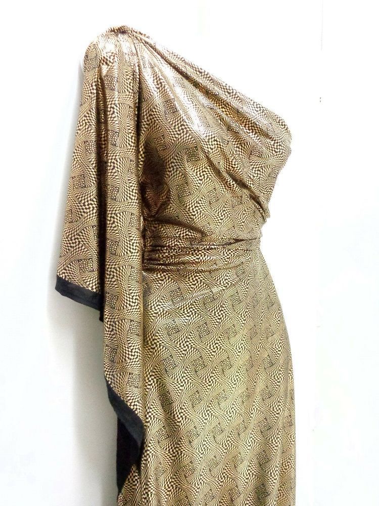 TRENDY metallic JERSEY , Folienprint , Meterware, Kleiderstoff, Gold, Schwarz