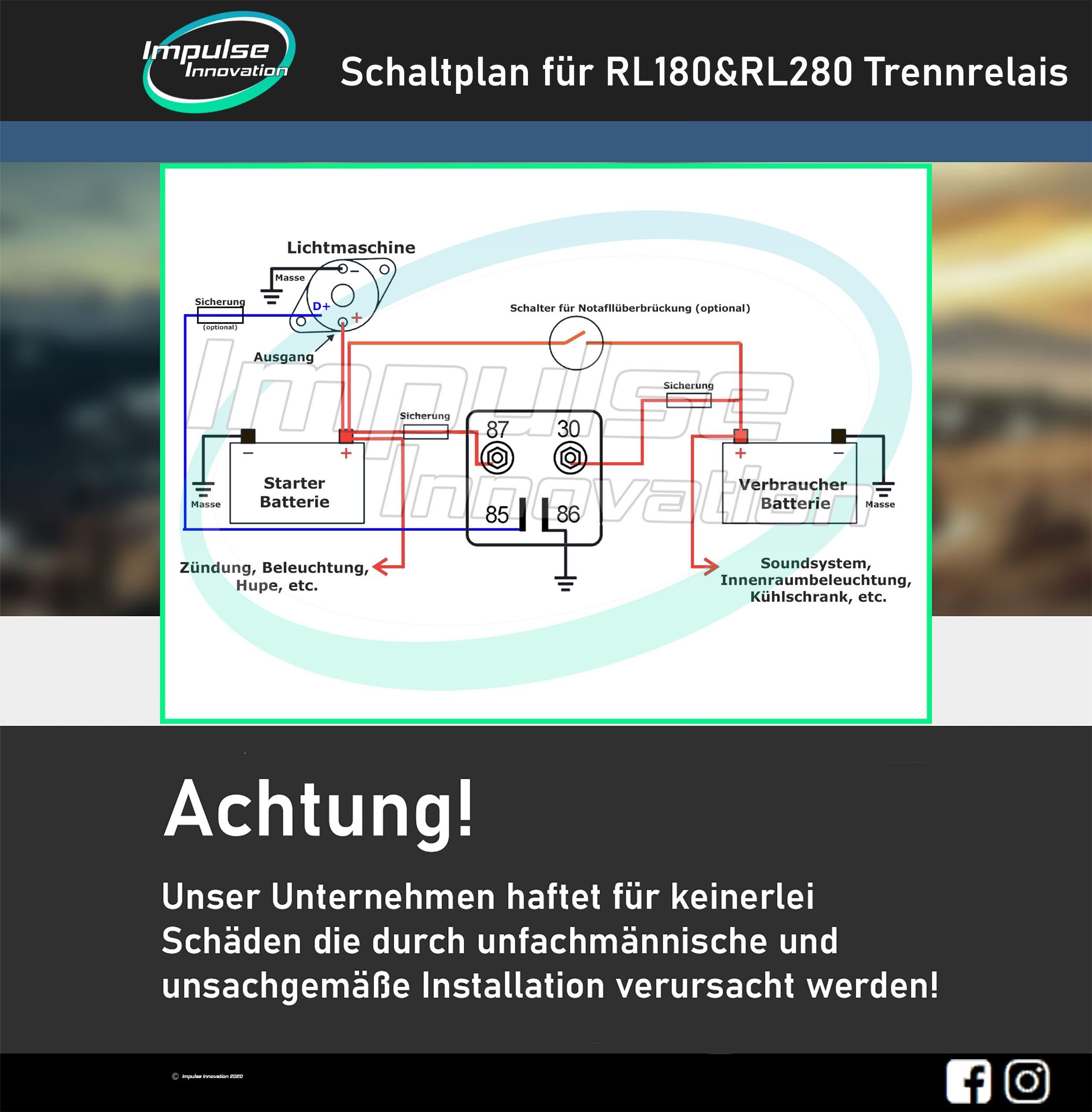 Trennrelais RL180-12 12V 100A + Ringkabelschuhe 10–25mm² zur Auswahl