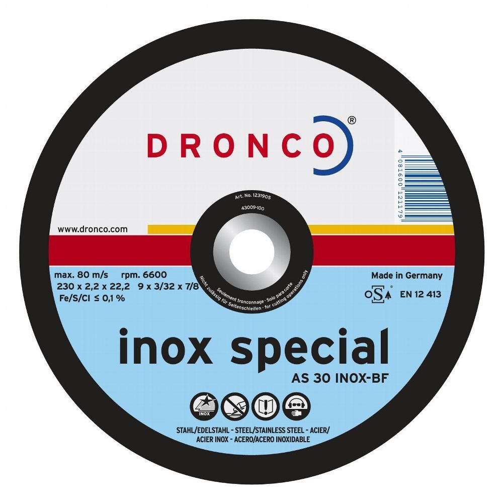 Dronco Trennscheibe 180 x 2,5 x 22,23 , AS 30 S Inox , Trennscheiben