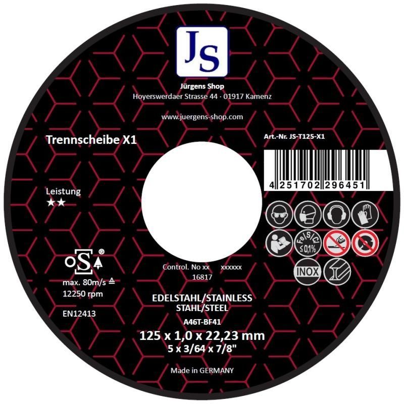 Rhodius Trennscheibe X1 , 125 x 1,0 x 22,23 für Stahl/ Edelstahl