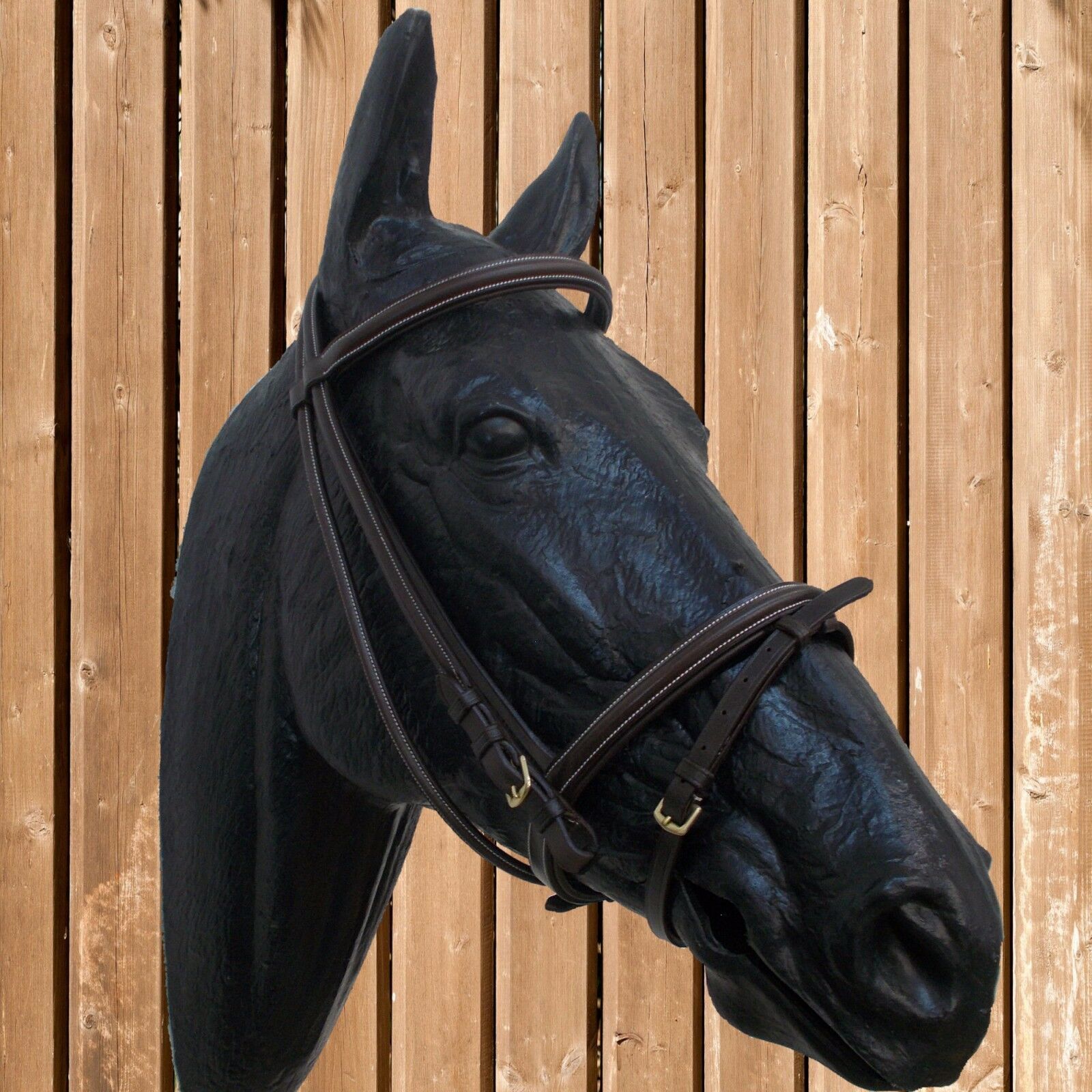 Trense Euro-Club ER-38, Trensenzaum, braun, weiße Nähte