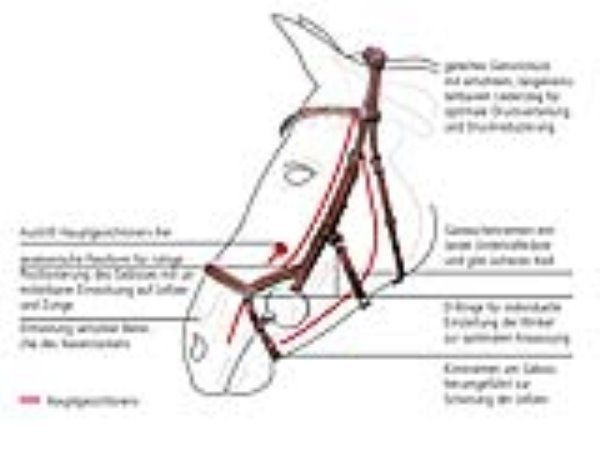 Trense MODENA BU 120907 hochmoderne High-Quality-Trense mit perfektionierter anatomischer Passform für eine gezielte und trotzdem schonende Einwirkung bei gleichzeitig klassischem Design aus bestem italienischem Leder Reithalfter maximale Größeneinstellbarkeit und Veränderbarkeit der Winkel für idea