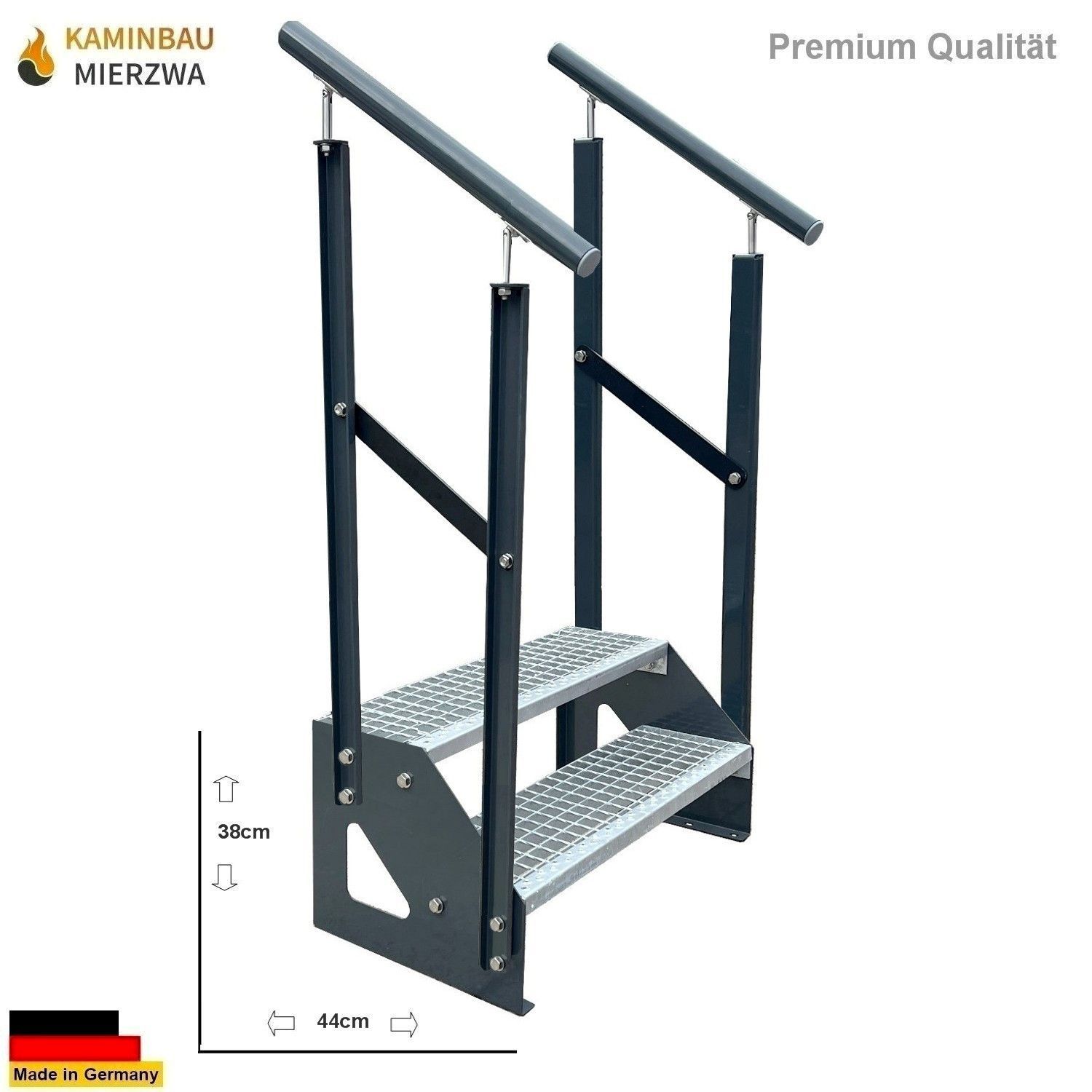 Treppe Freistehend Geländer 2 Stufen Seiten Pulverlackiert H:38cm