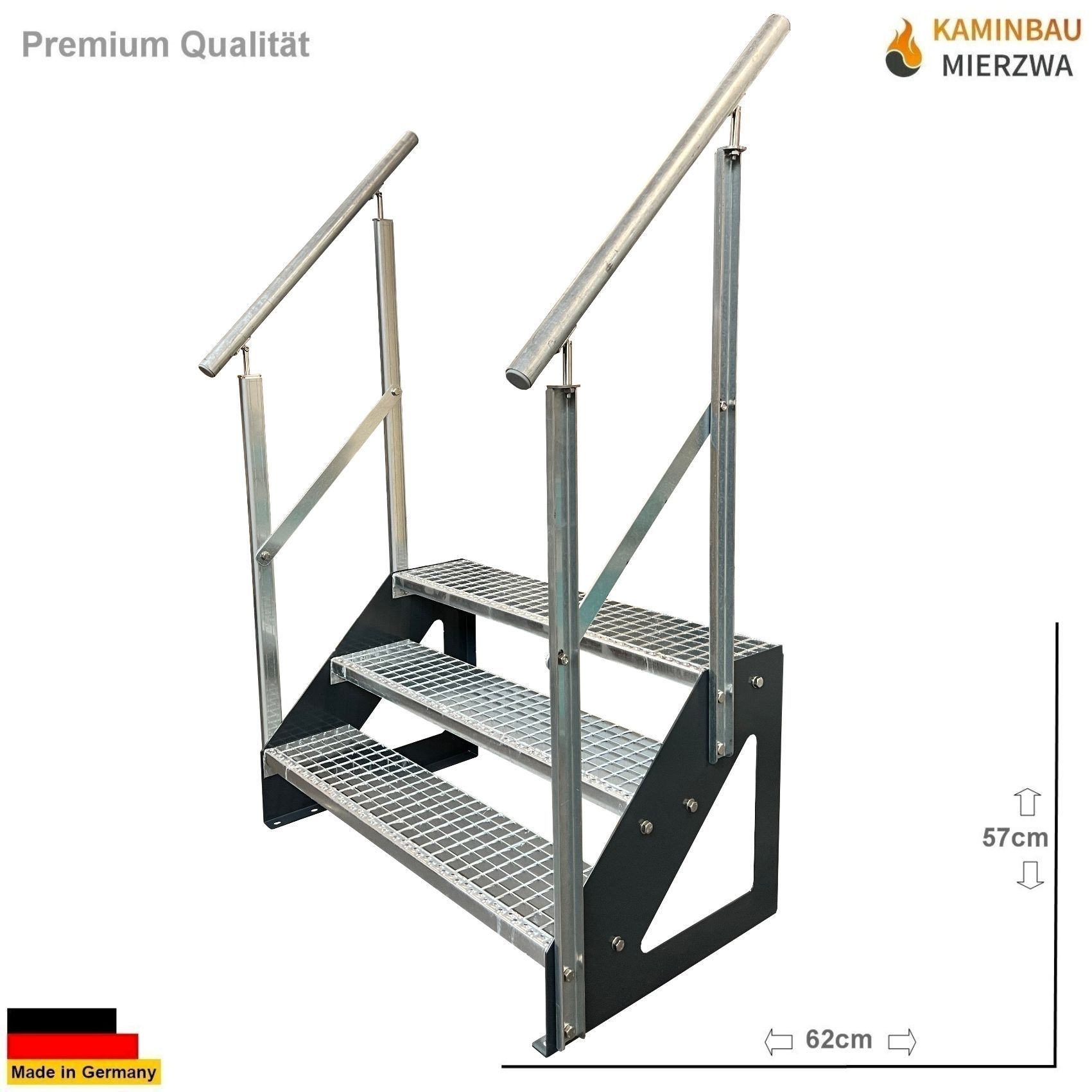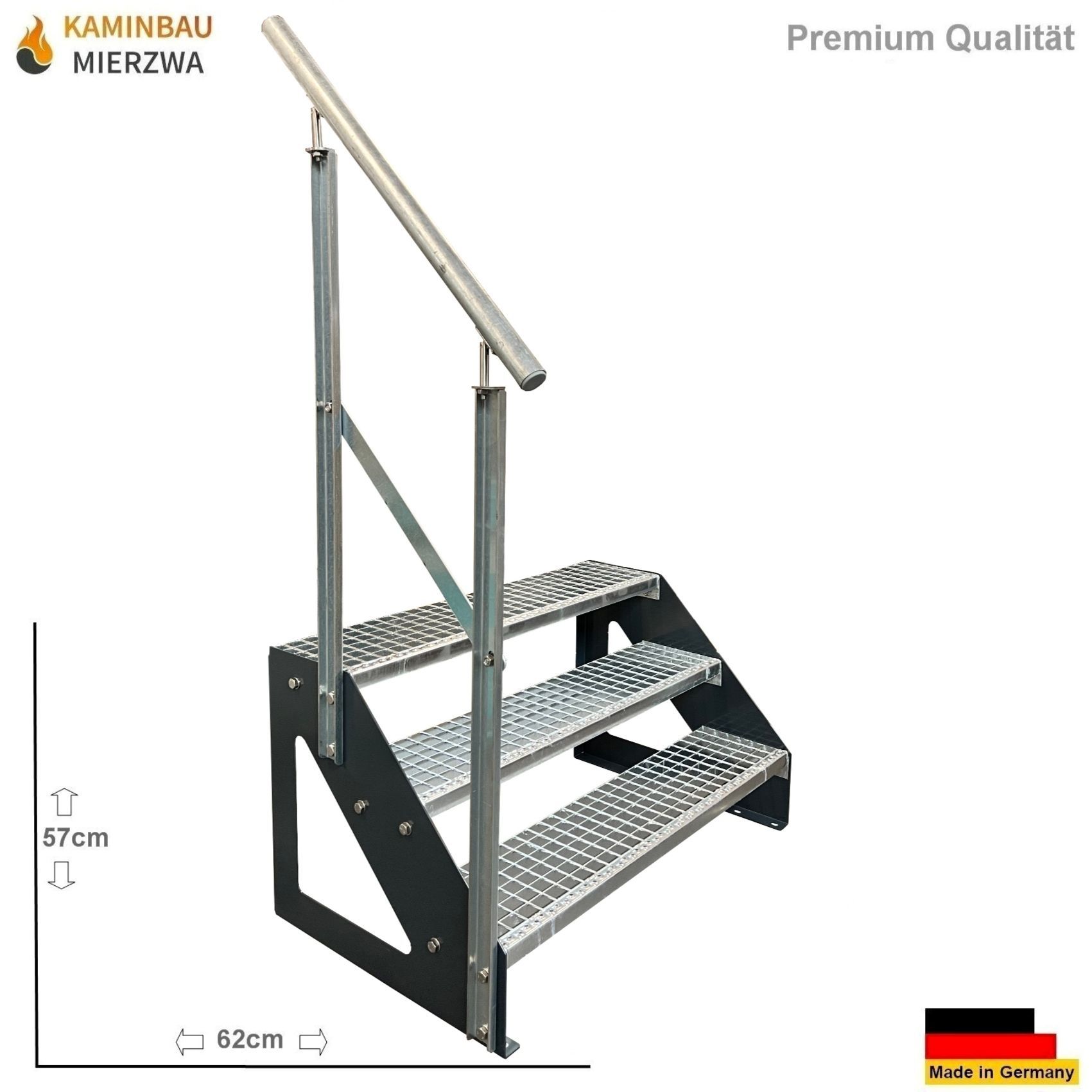 Treppe Freistehend Geländer 3 Stufen Wangen Pulverlackiert H:57cm