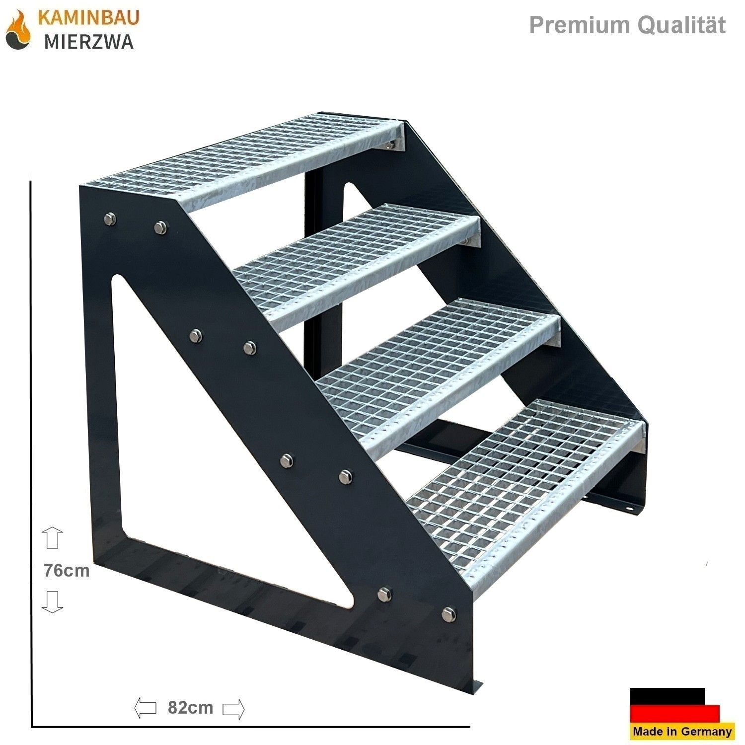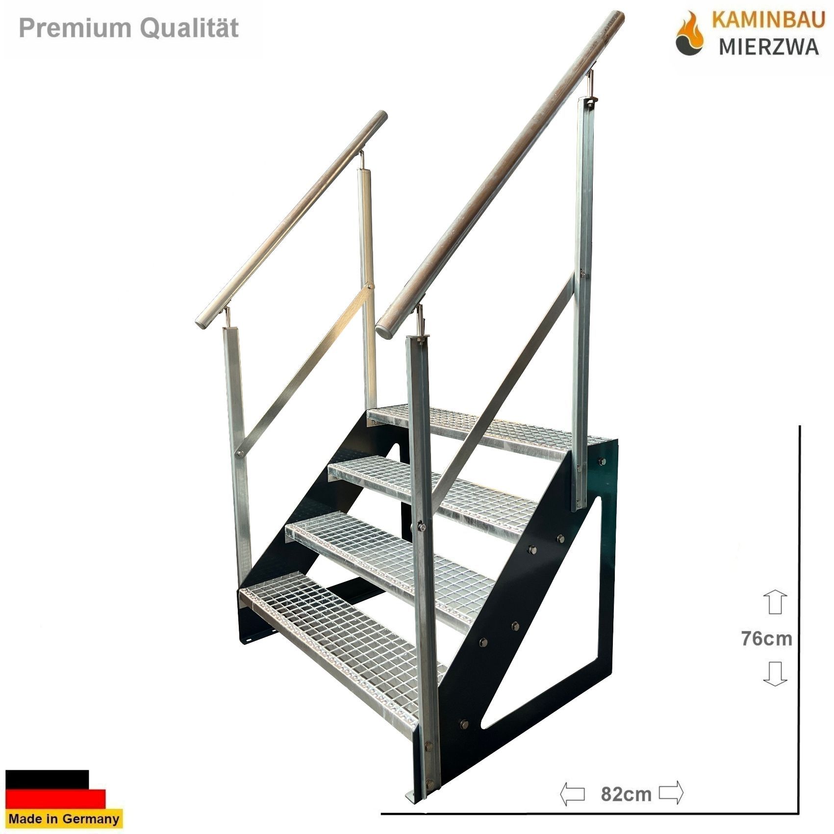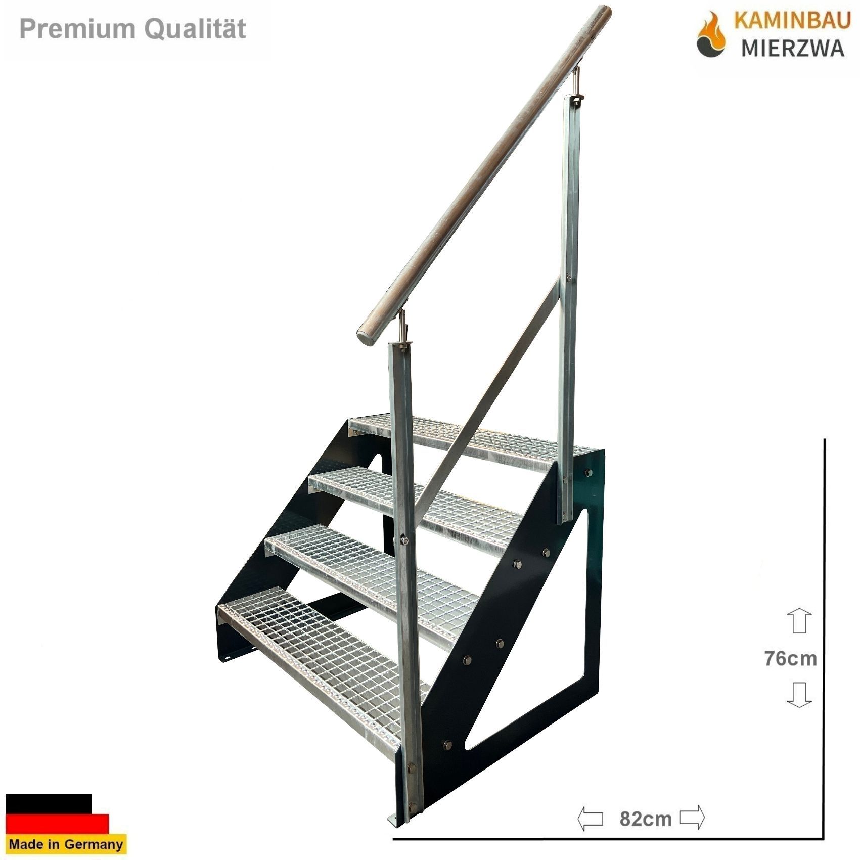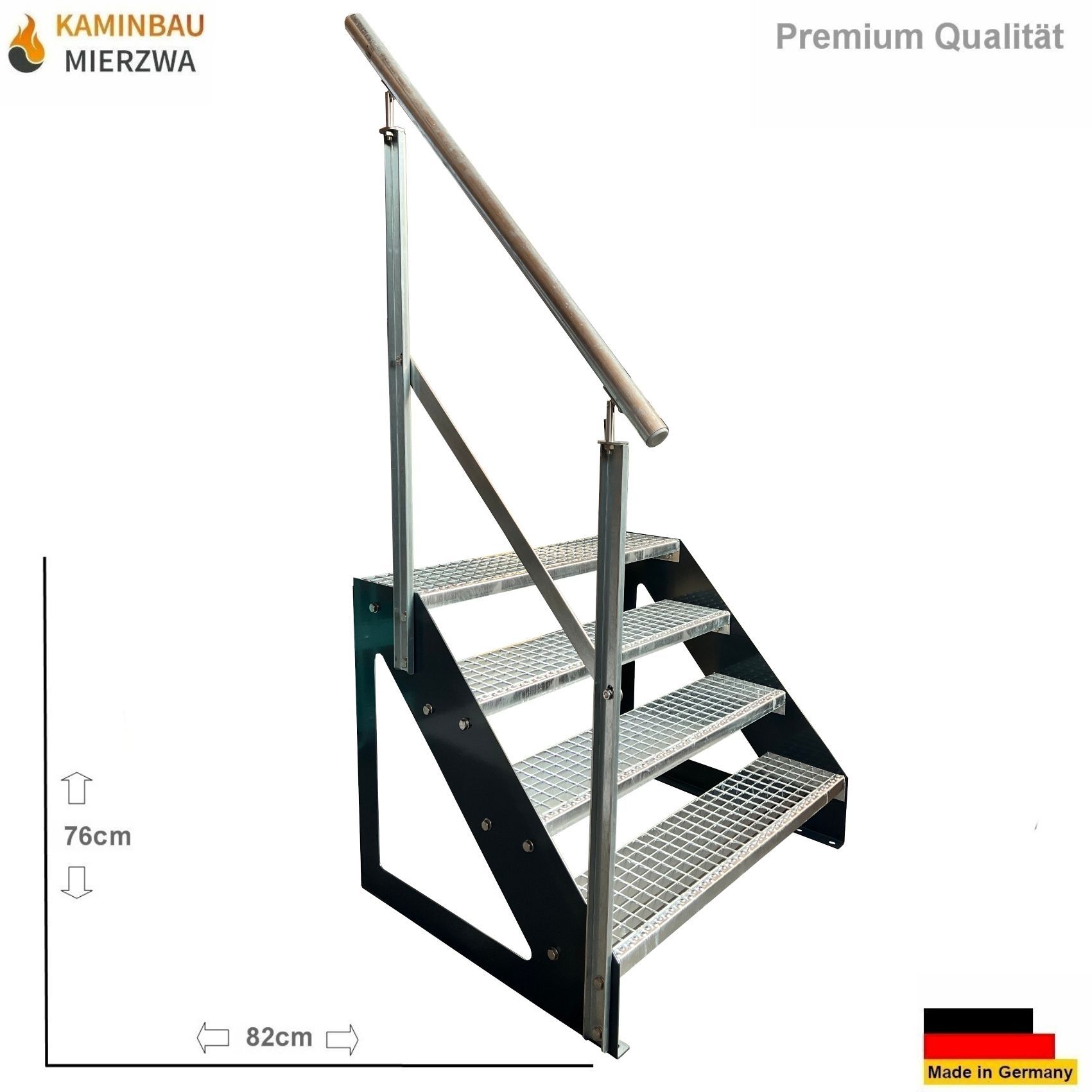 Treppe Freistehend Geländer 4 Stufen Wangen Pulverlackiert H:76cm
