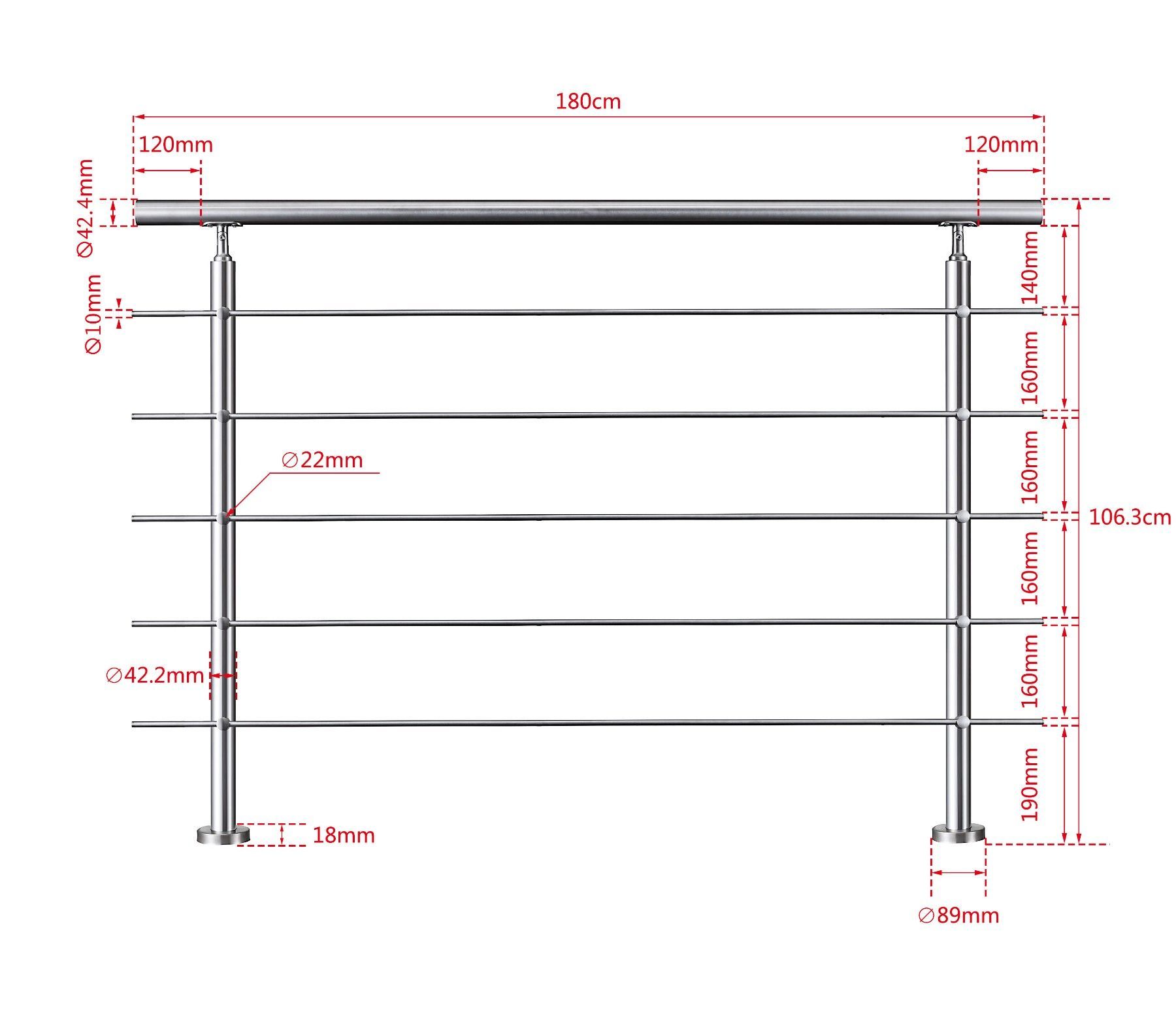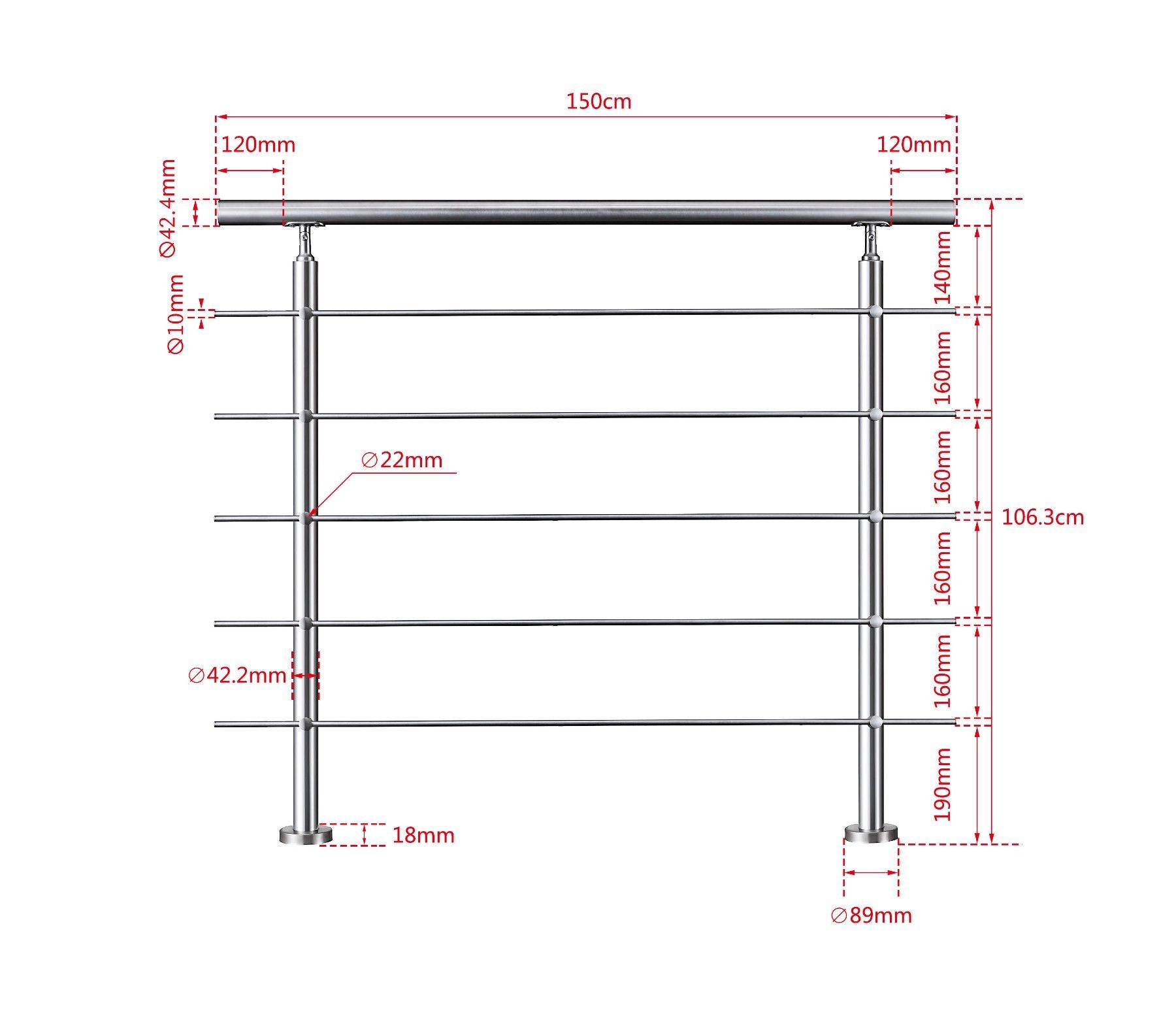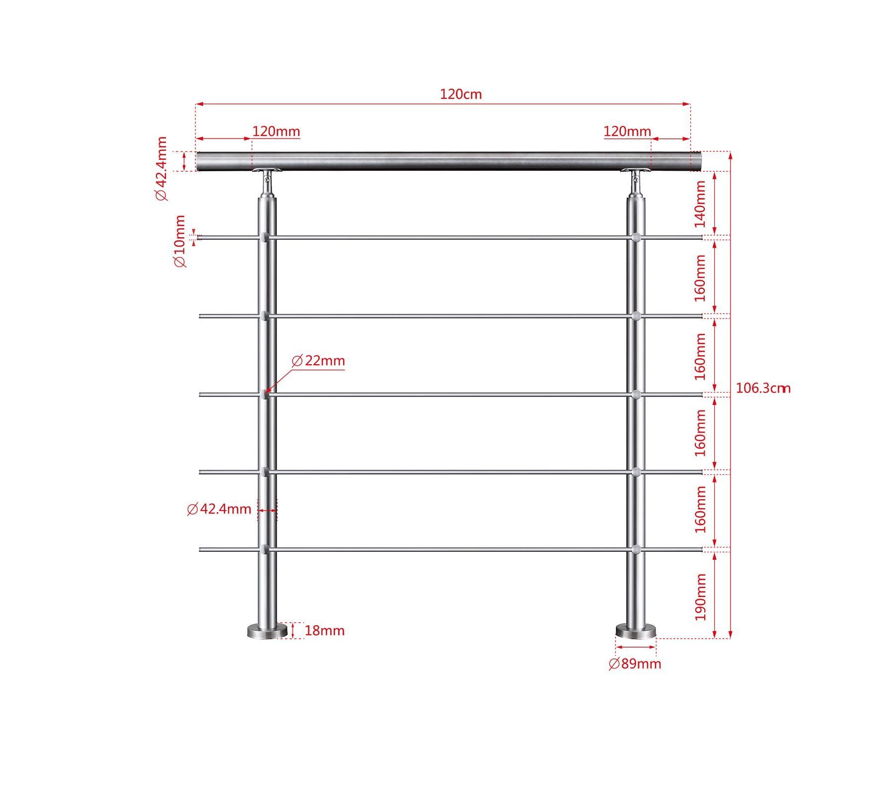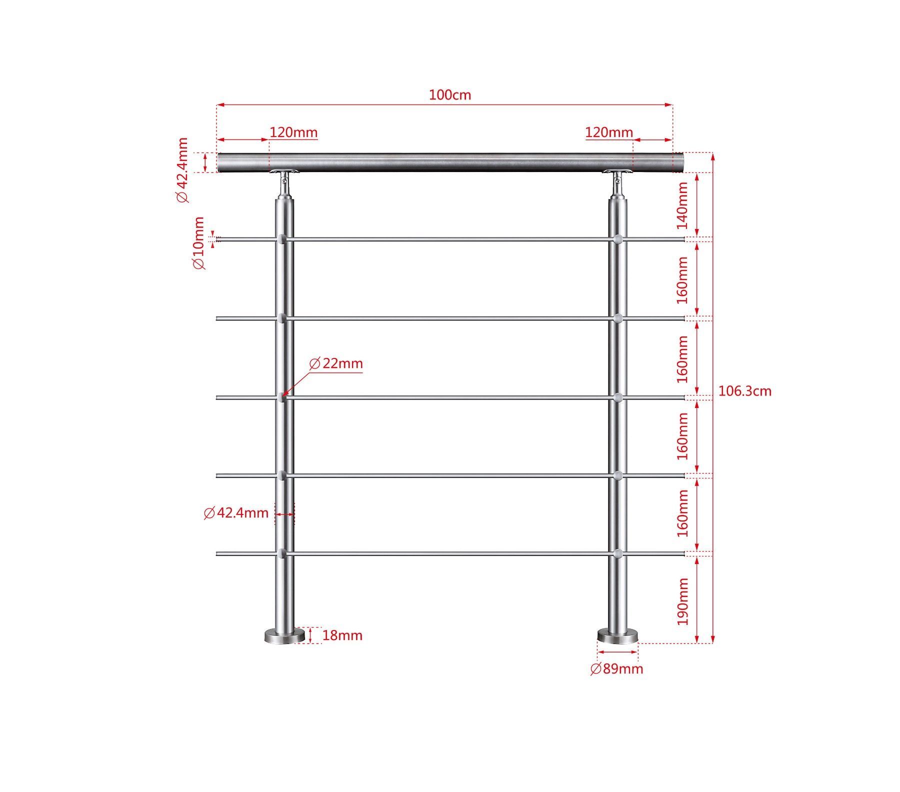 Treppengeländer Edelstahl Außen, Handlauf Edelstahl Geländer 5 Querstäbe