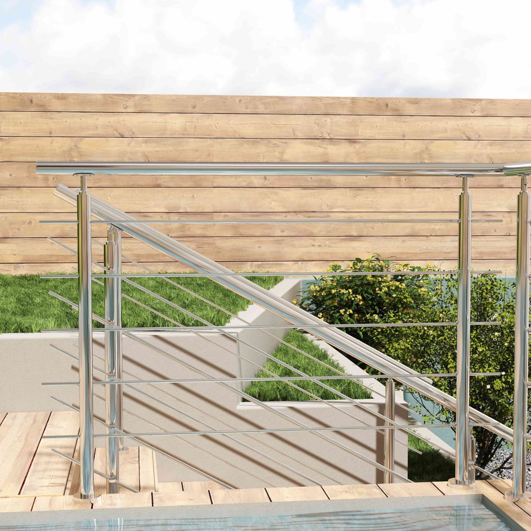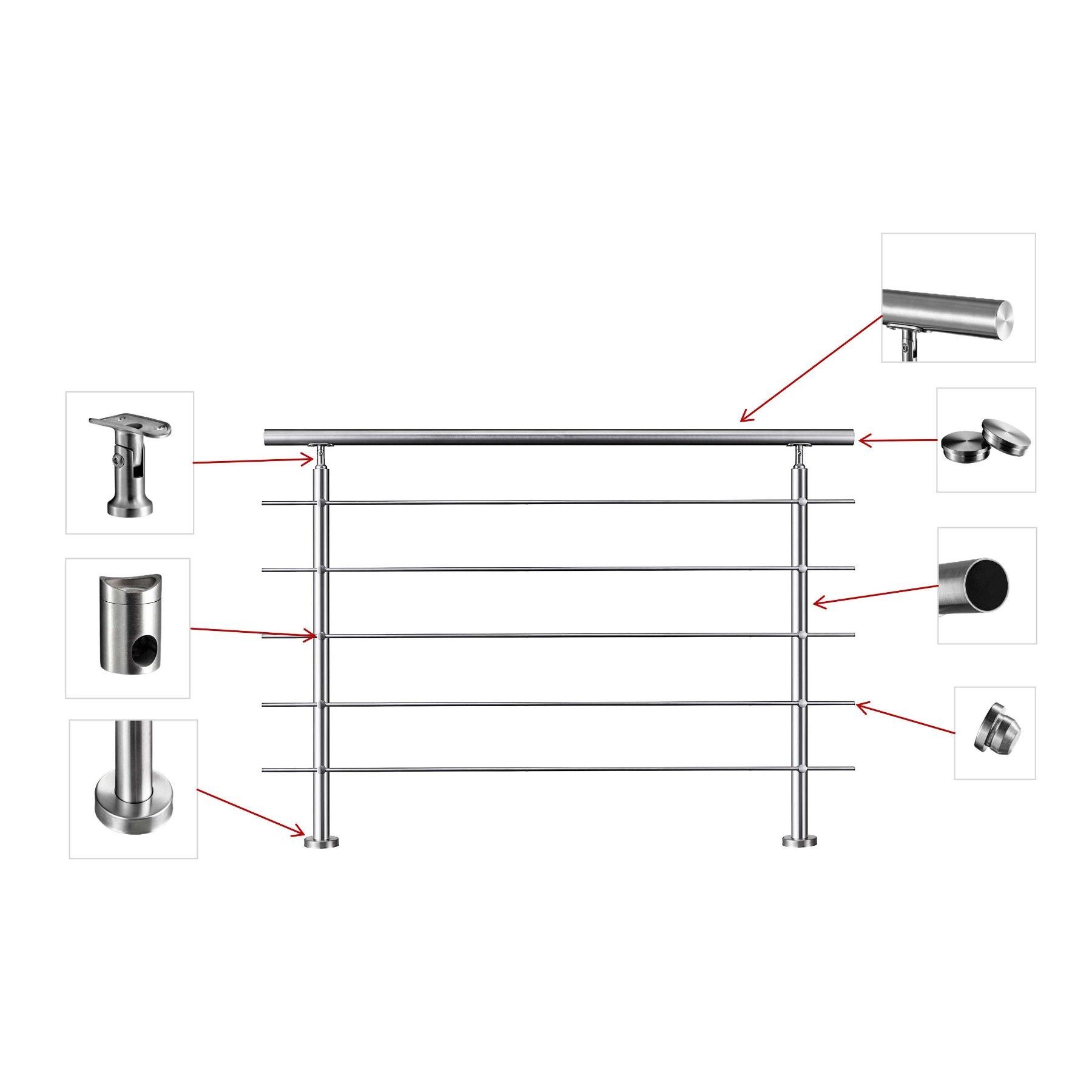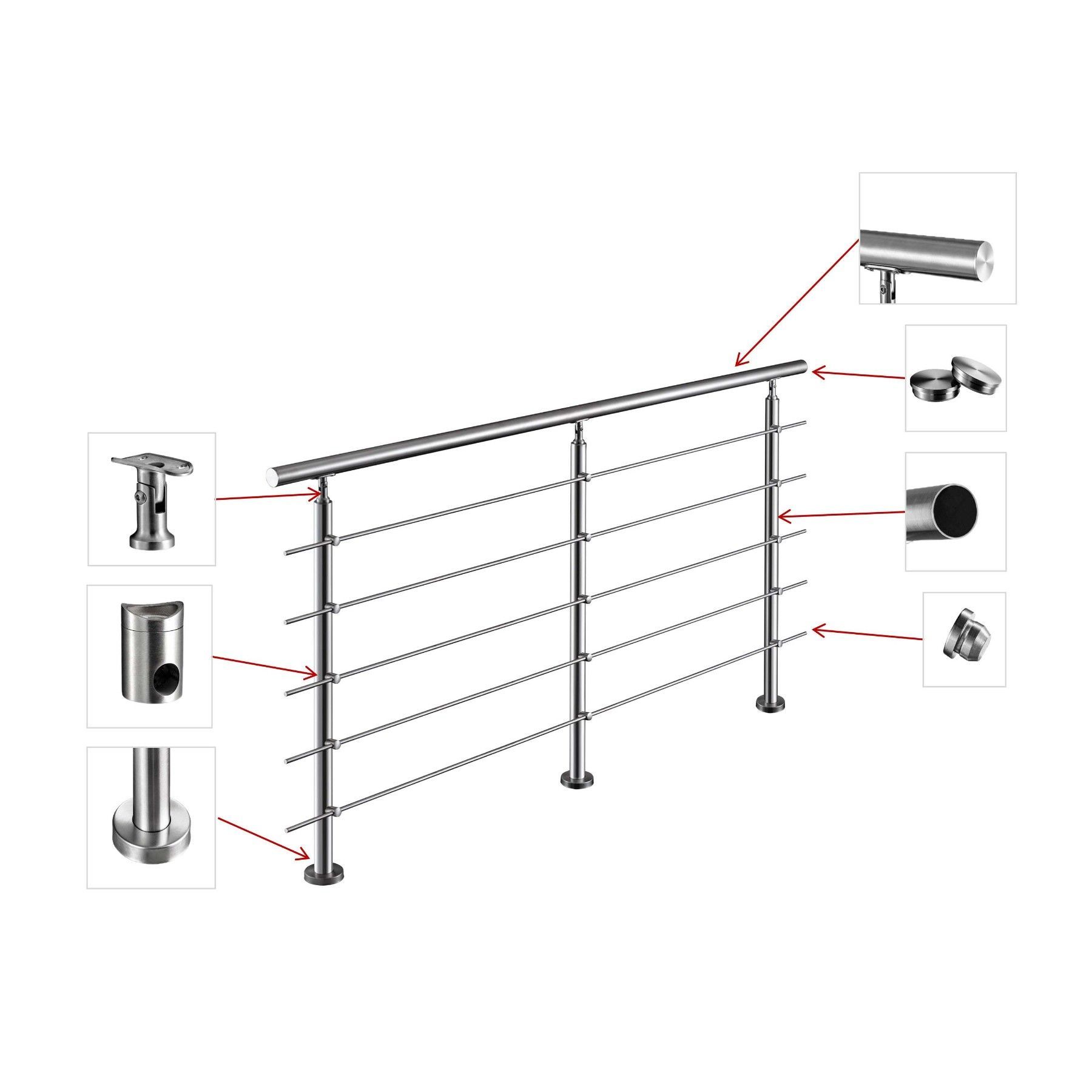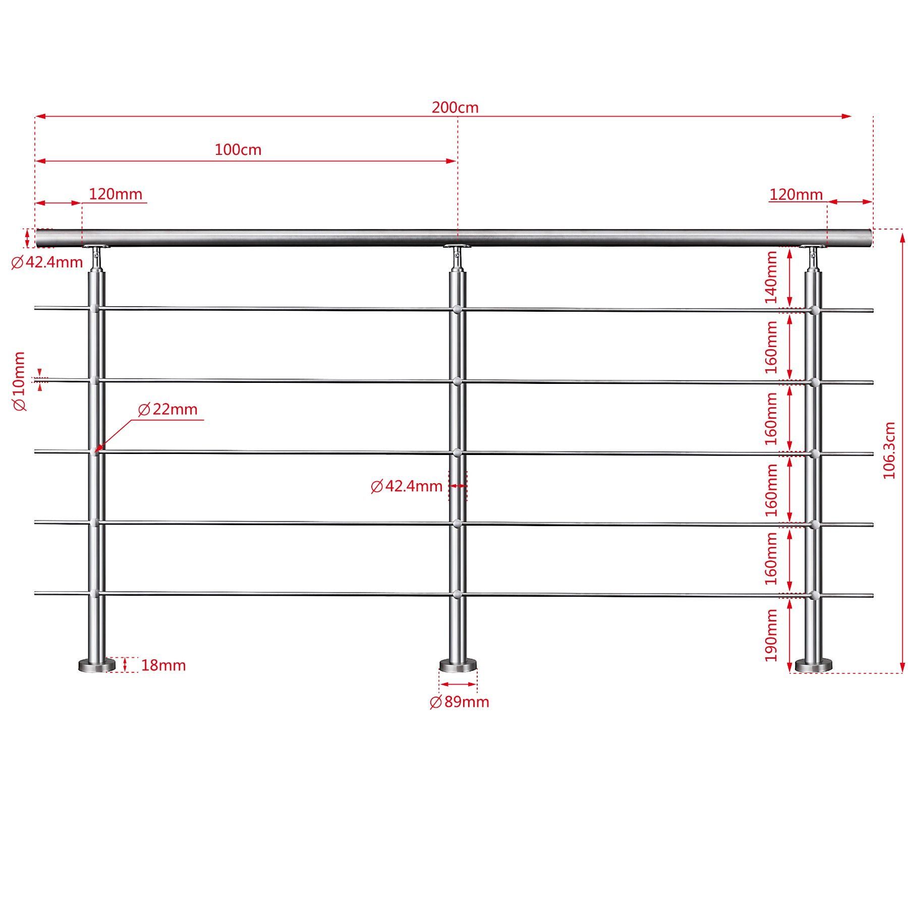 Treppengeländer Edelstahl Außen, Handlauf Edelstahl Geländer 5 Querstäbe