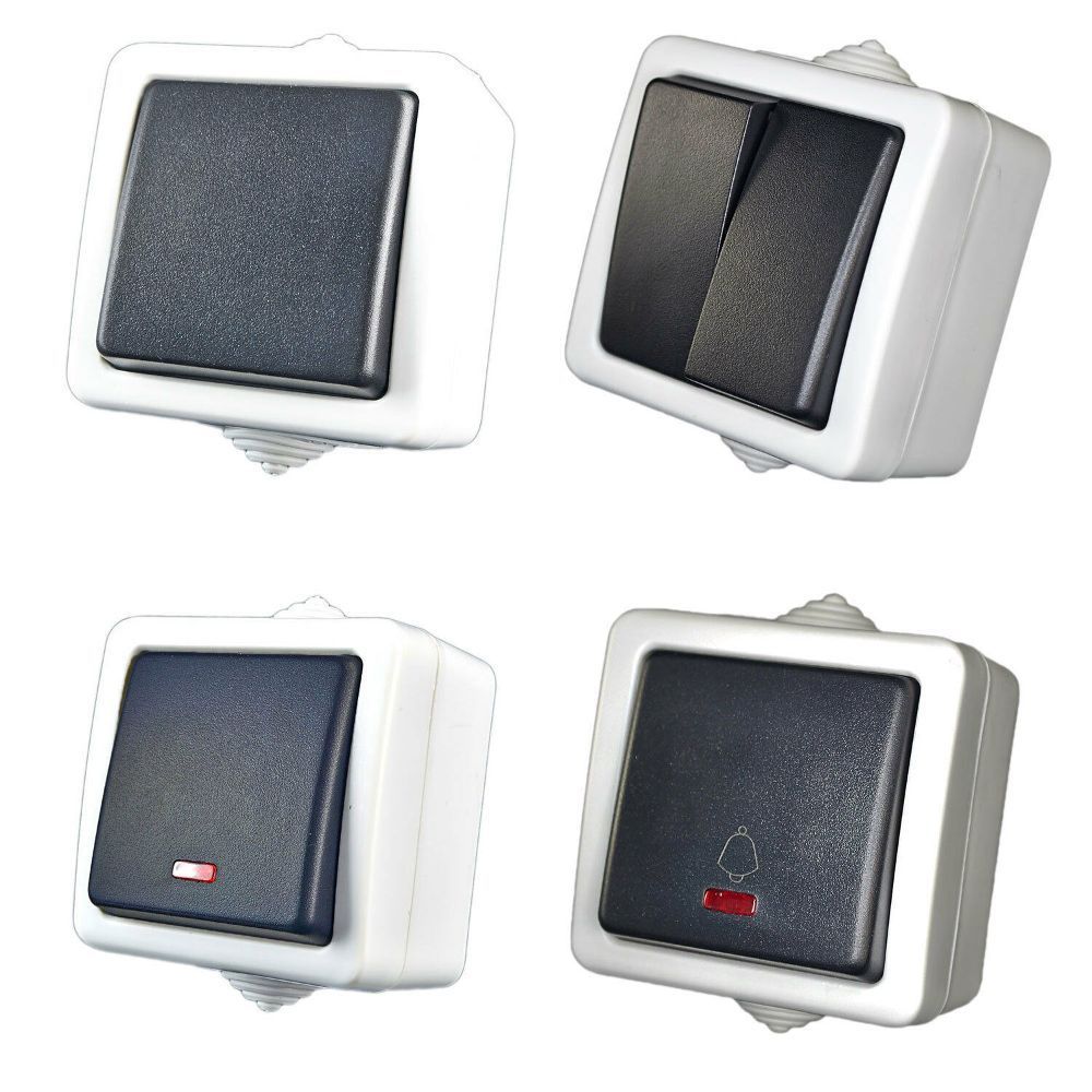 Kanlux Treppenschalter Aufputz Feuchtraumschalter, Kontrollampe, Klingeltaster, Taster