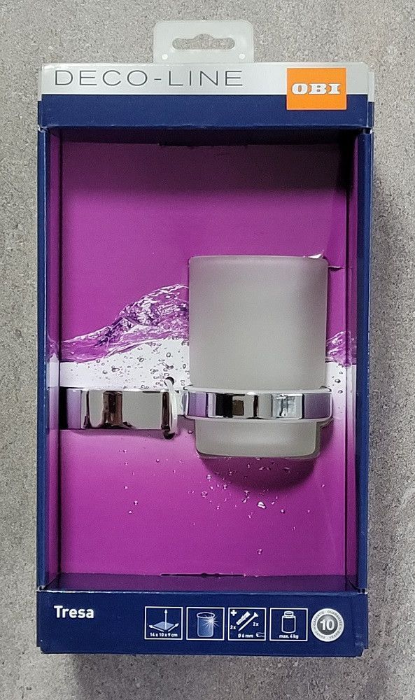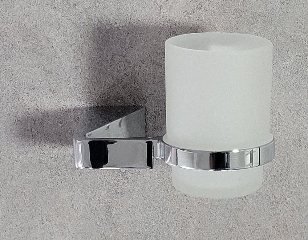 Tresa Zahnbecher mit Halter Chrom Glas satiniert Wandmontage massiv OBI