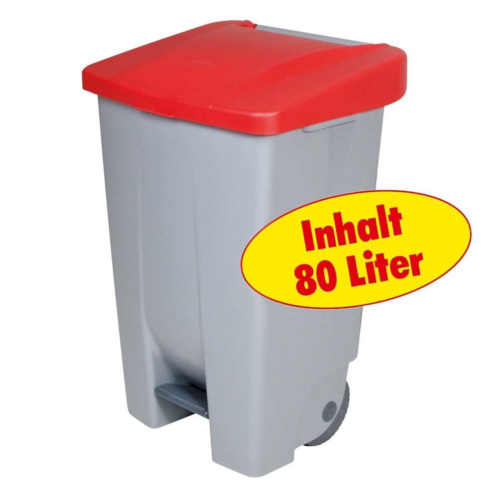 Tret-Abfallbehälter mit Rollen, 80 l, grau/rot HxBxT 740x490x420 mm