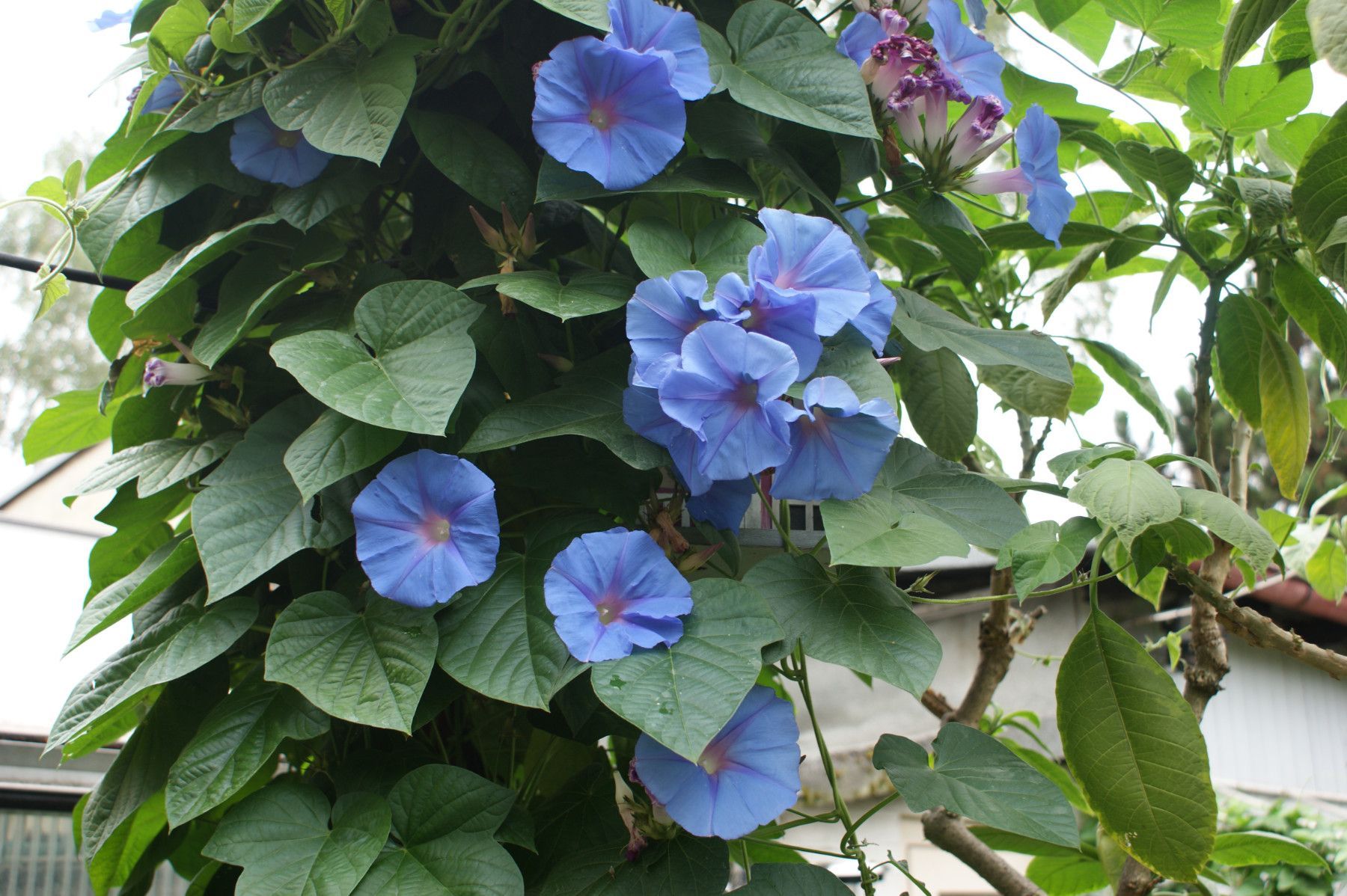 Trichterwinde-Jungpflanze mit blauen Blüten