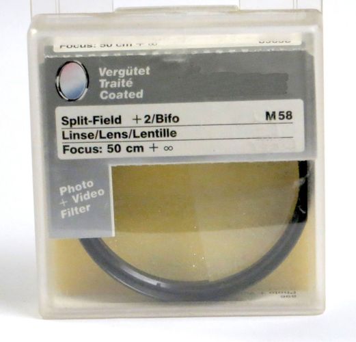 Tricklinse Split - Field +2 Bifo Focus 50cm + ∞ wie Hama Hoya Doppelbild , eine Seite mit 50 cm Entfernung , die zweite Seite mit Einstellung Unendlich am Objektiv Die halbe Filterscheibe kann im fest eingeschraubtem Zustand gedreht werden in beliebige Position Wurde auch bei Ebay-Kleinanzeige