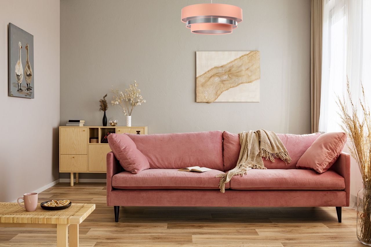 Triniti Hängeleuchte Version 1 Becher weiß 60cm Pfirsichfarben, Silber