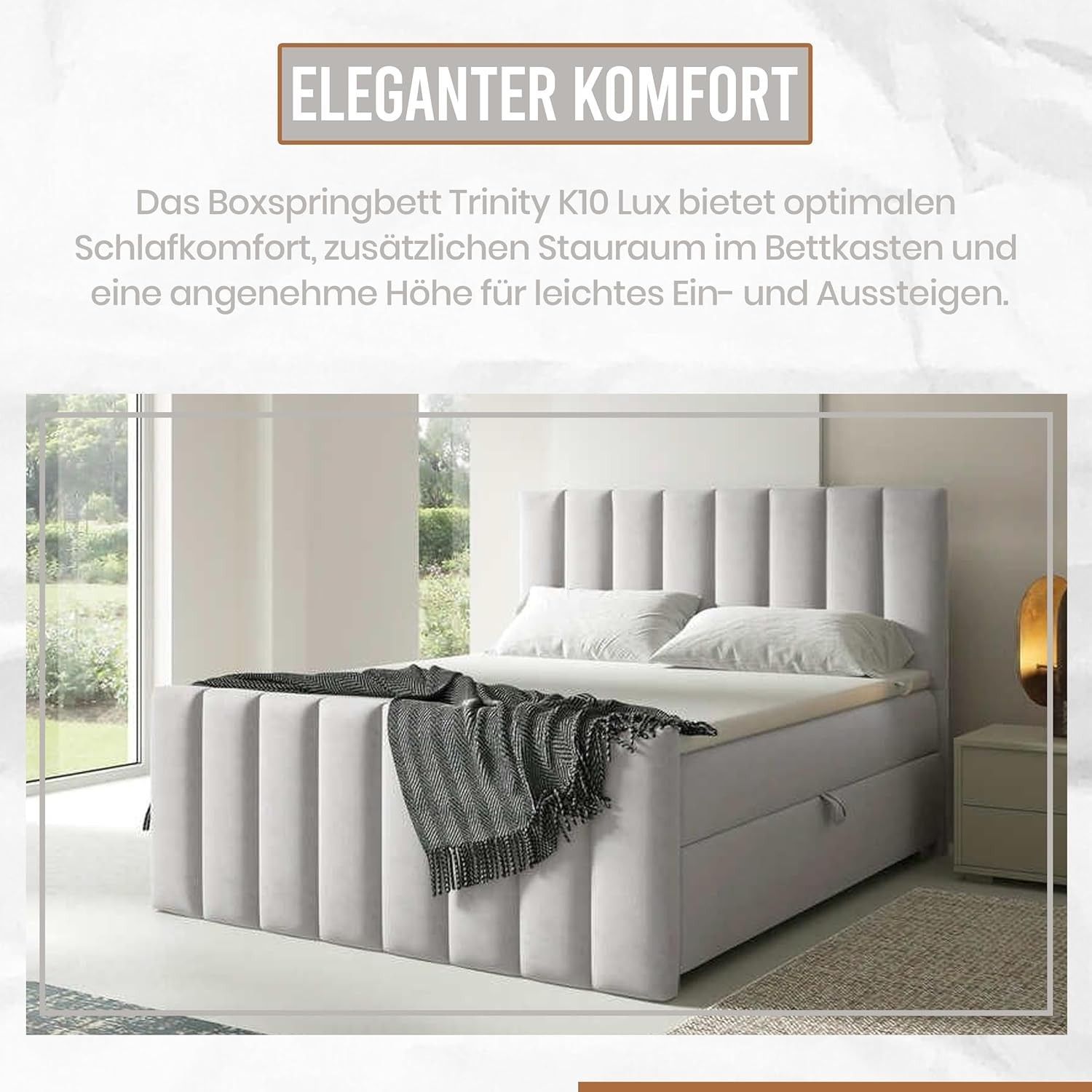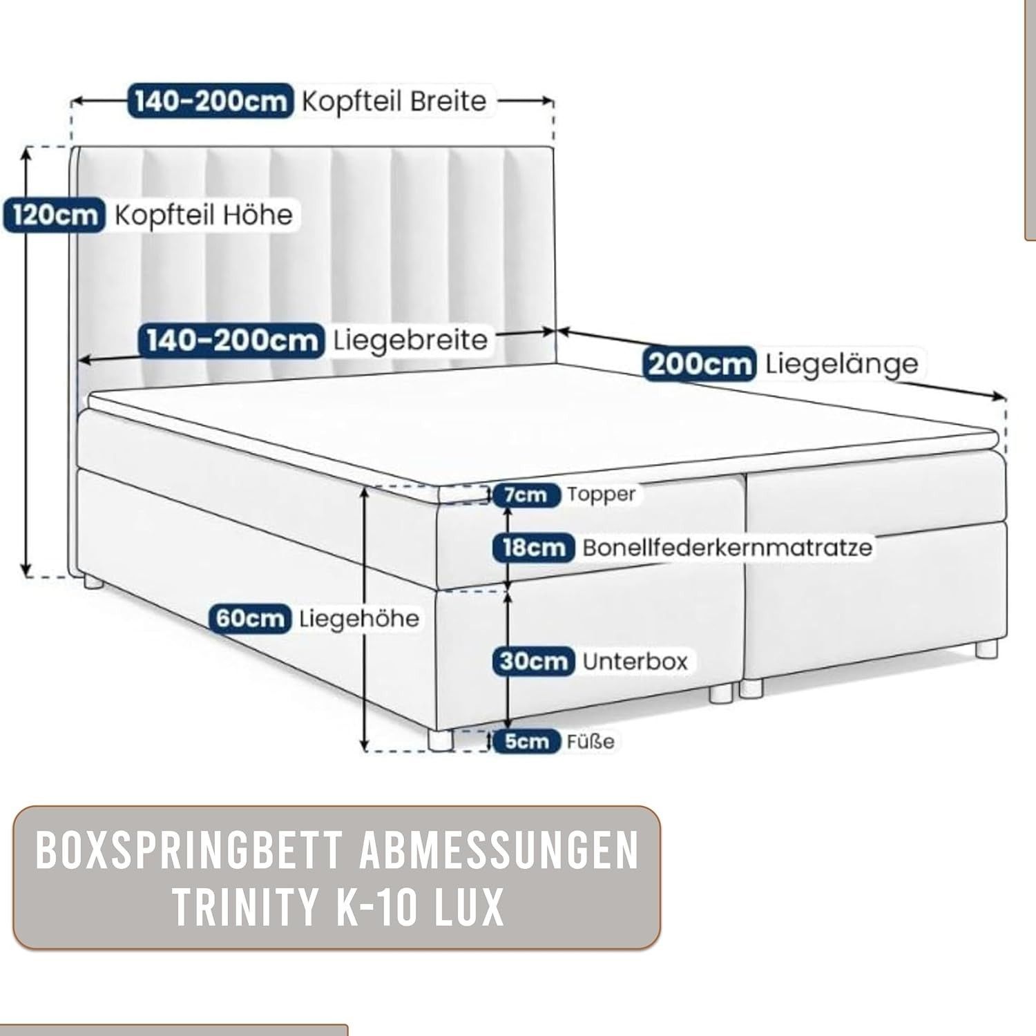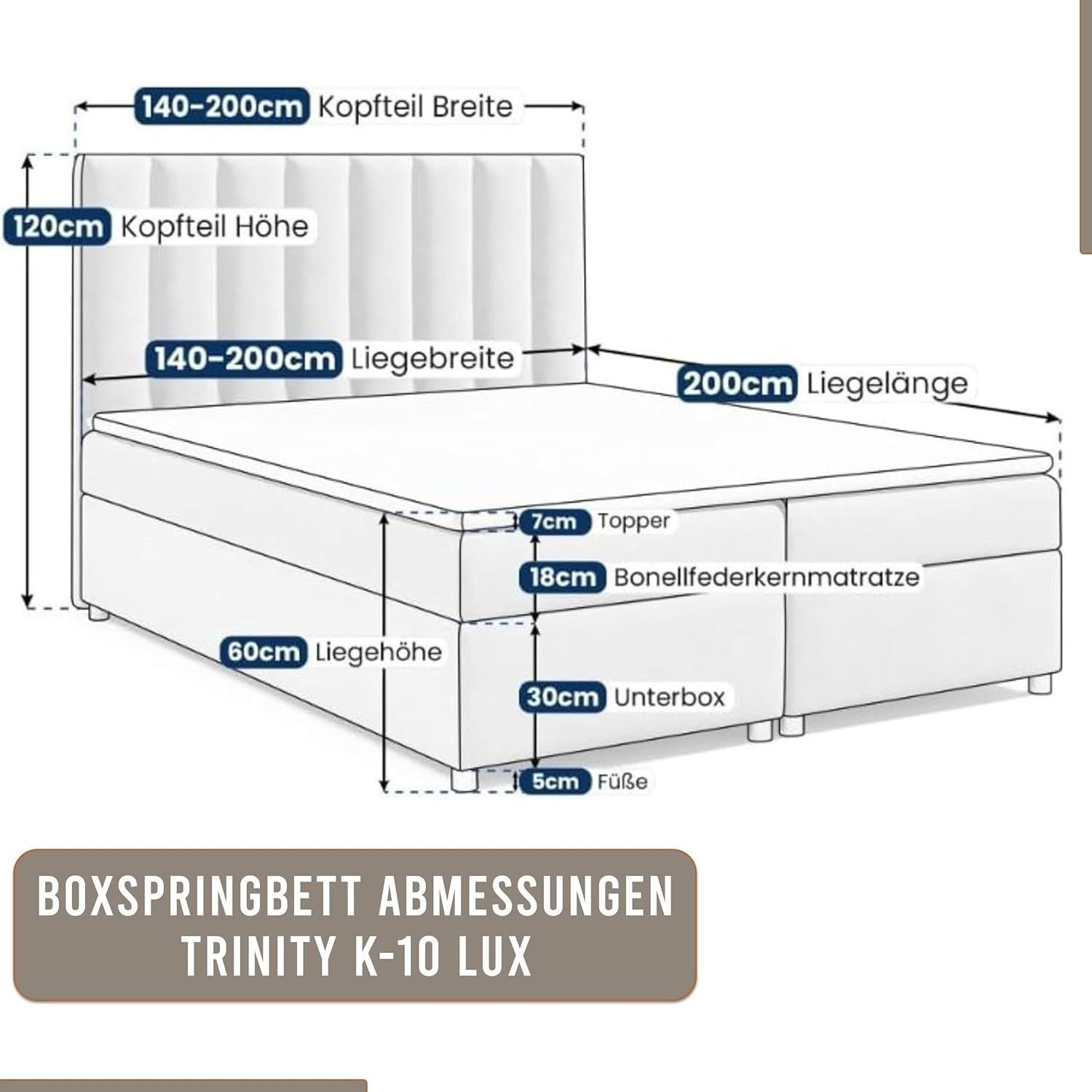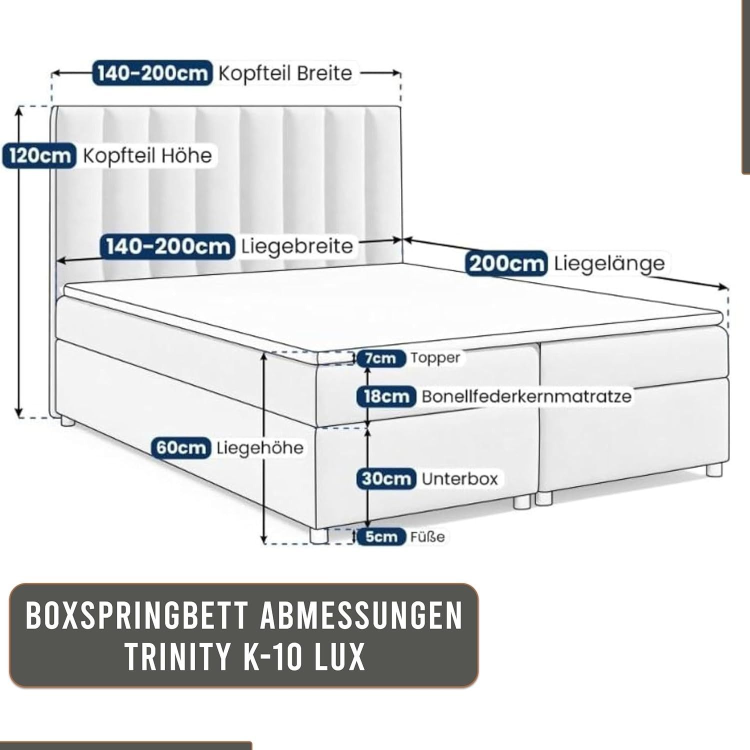 Trinity K-10 Boxspringbett mit Stauraum & 7 cm Topper, Bonellfederkern ,140-200x200cm
