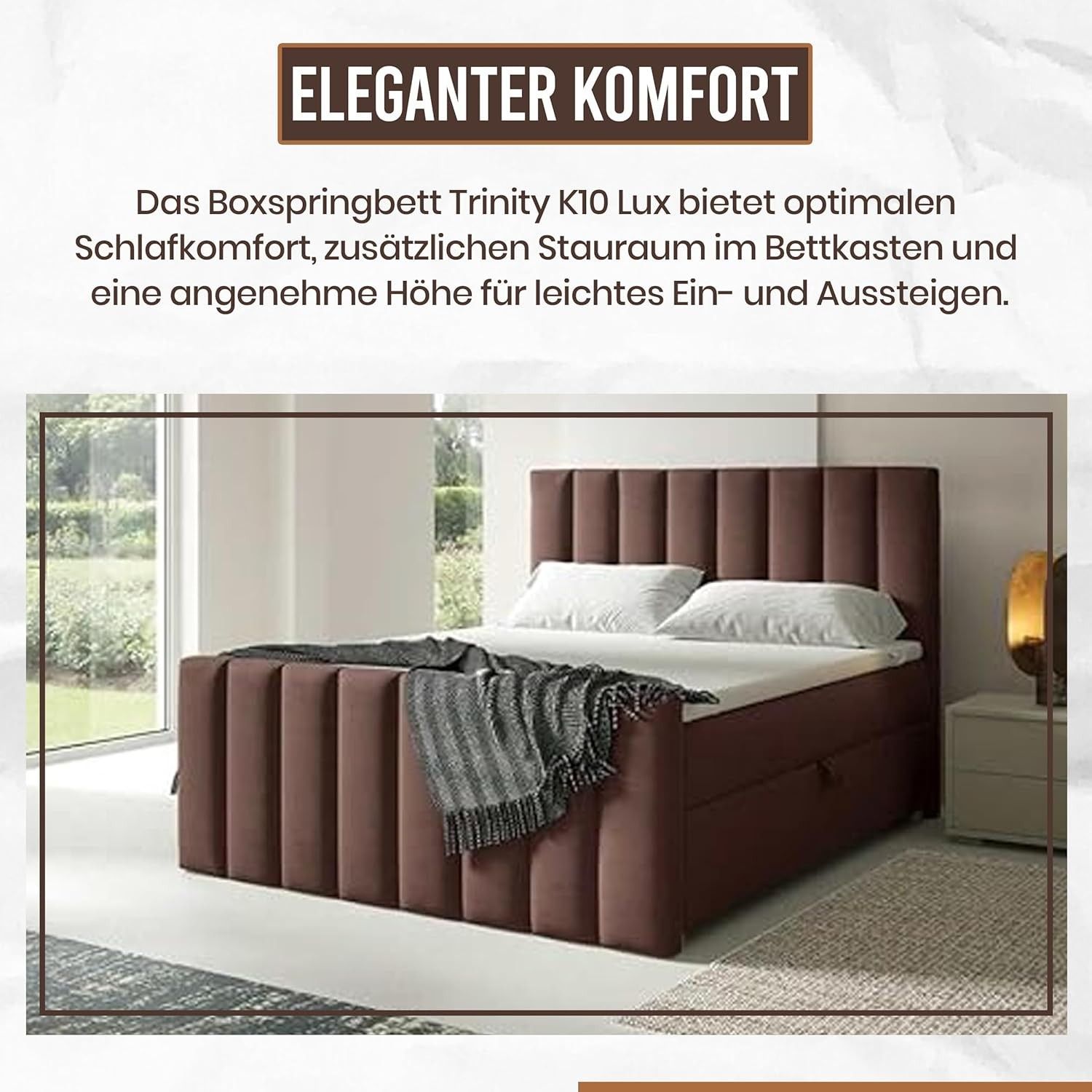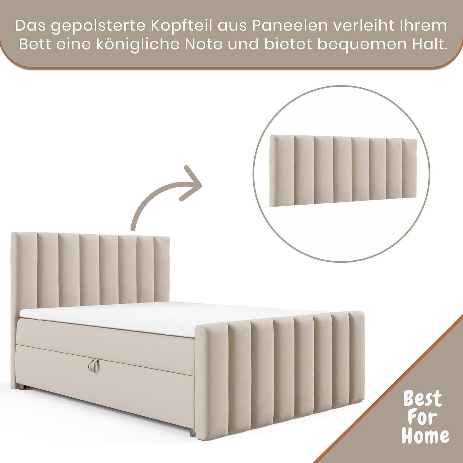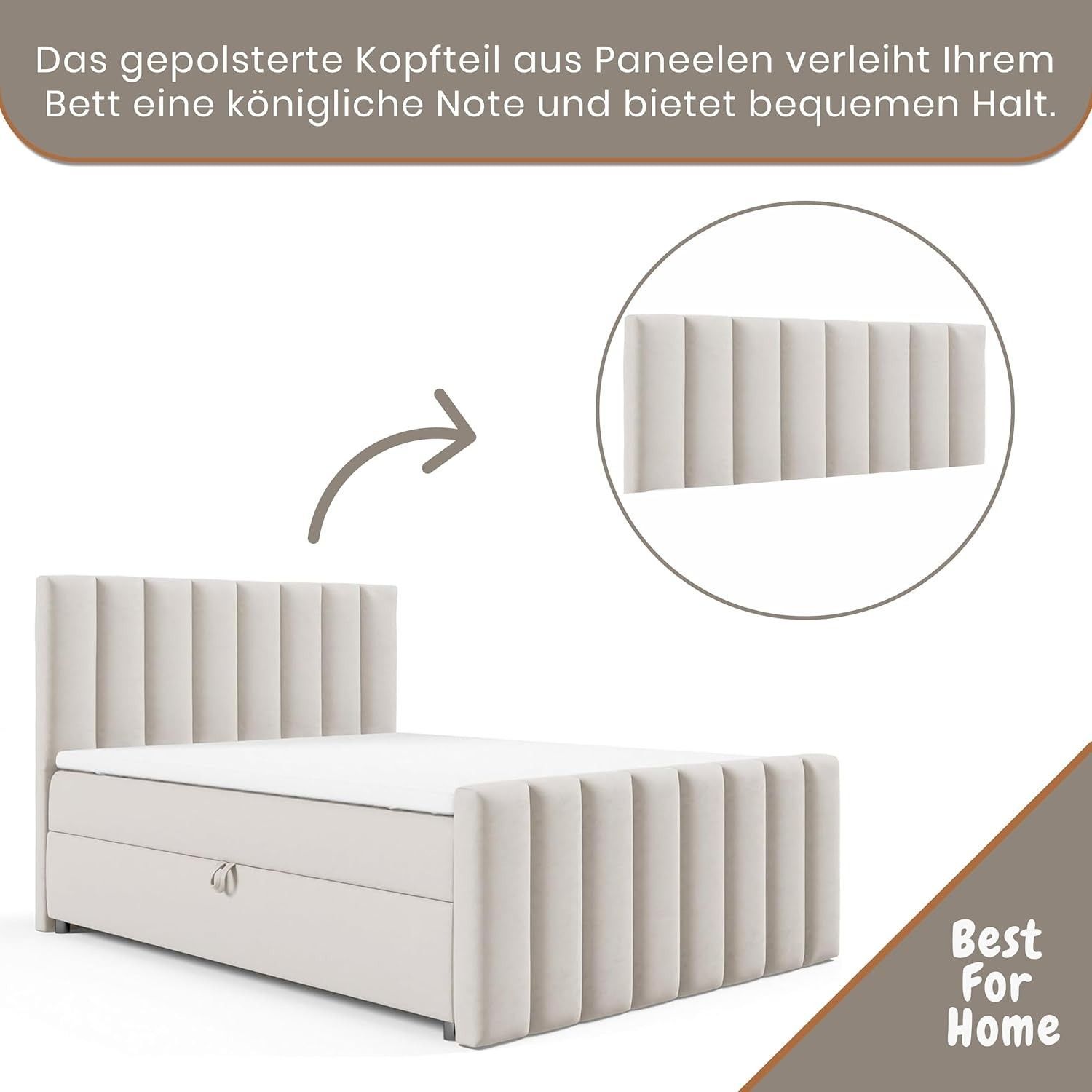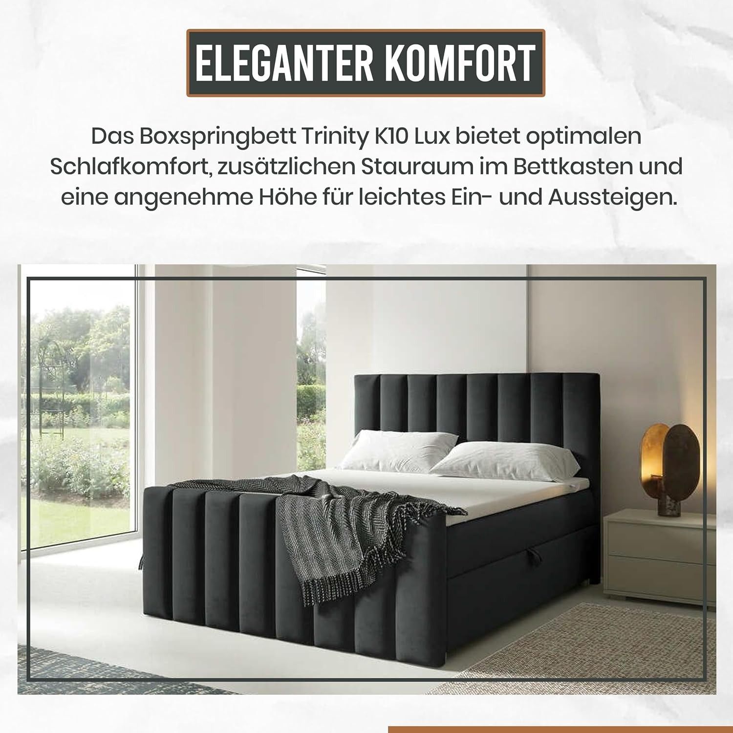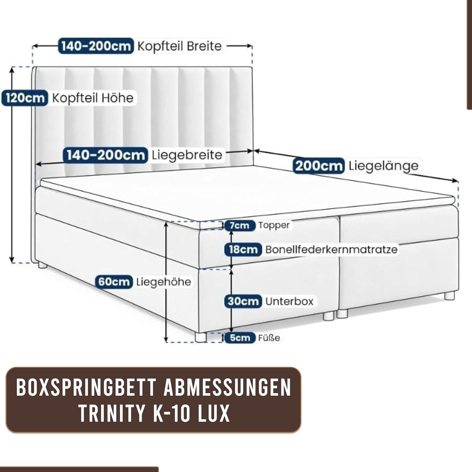 Trinity K-10 Boxspringbett mit Stauraum & 7 cm Topper, Bonellfederkern ,140-200x200cm