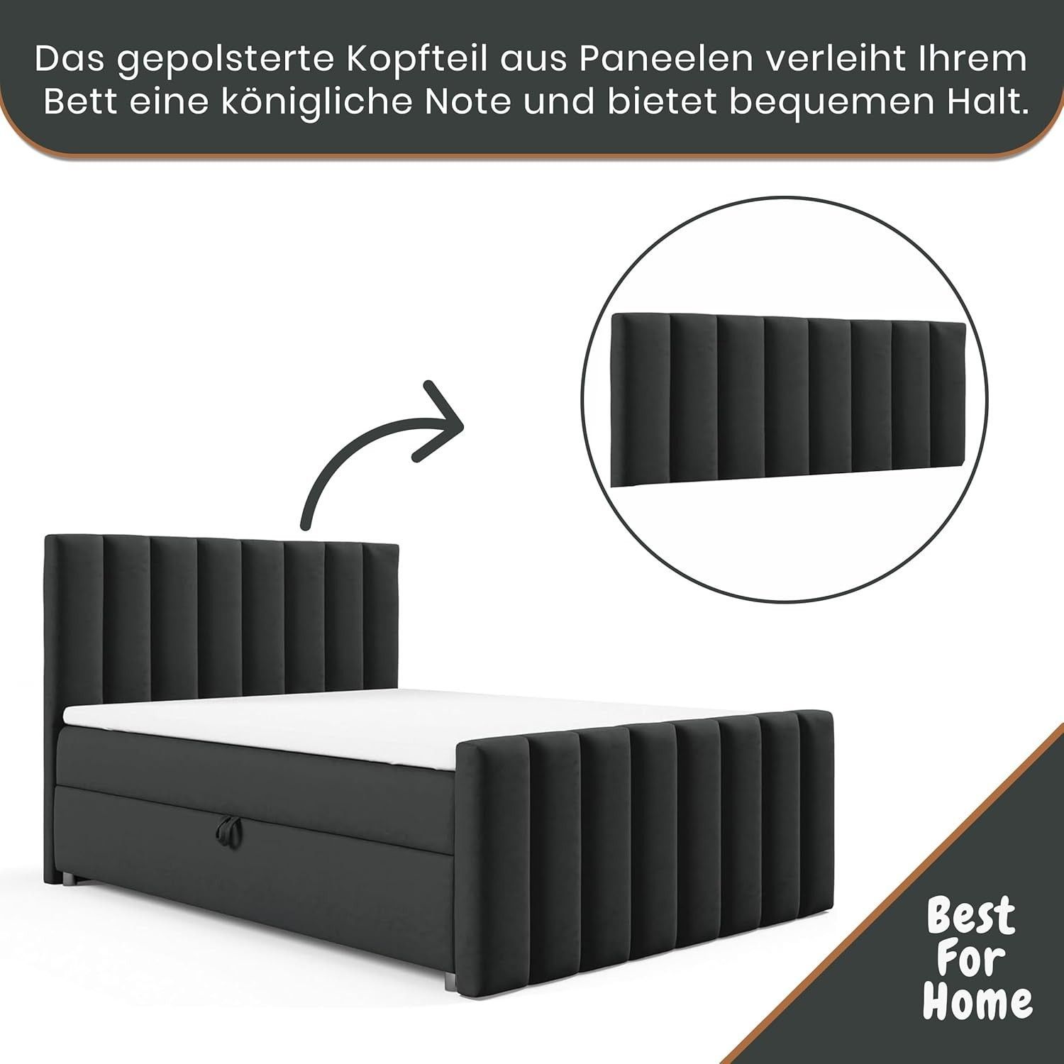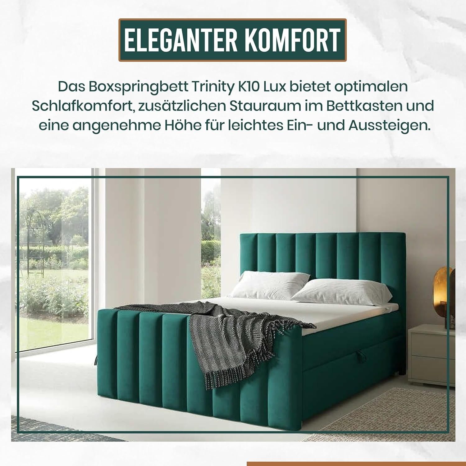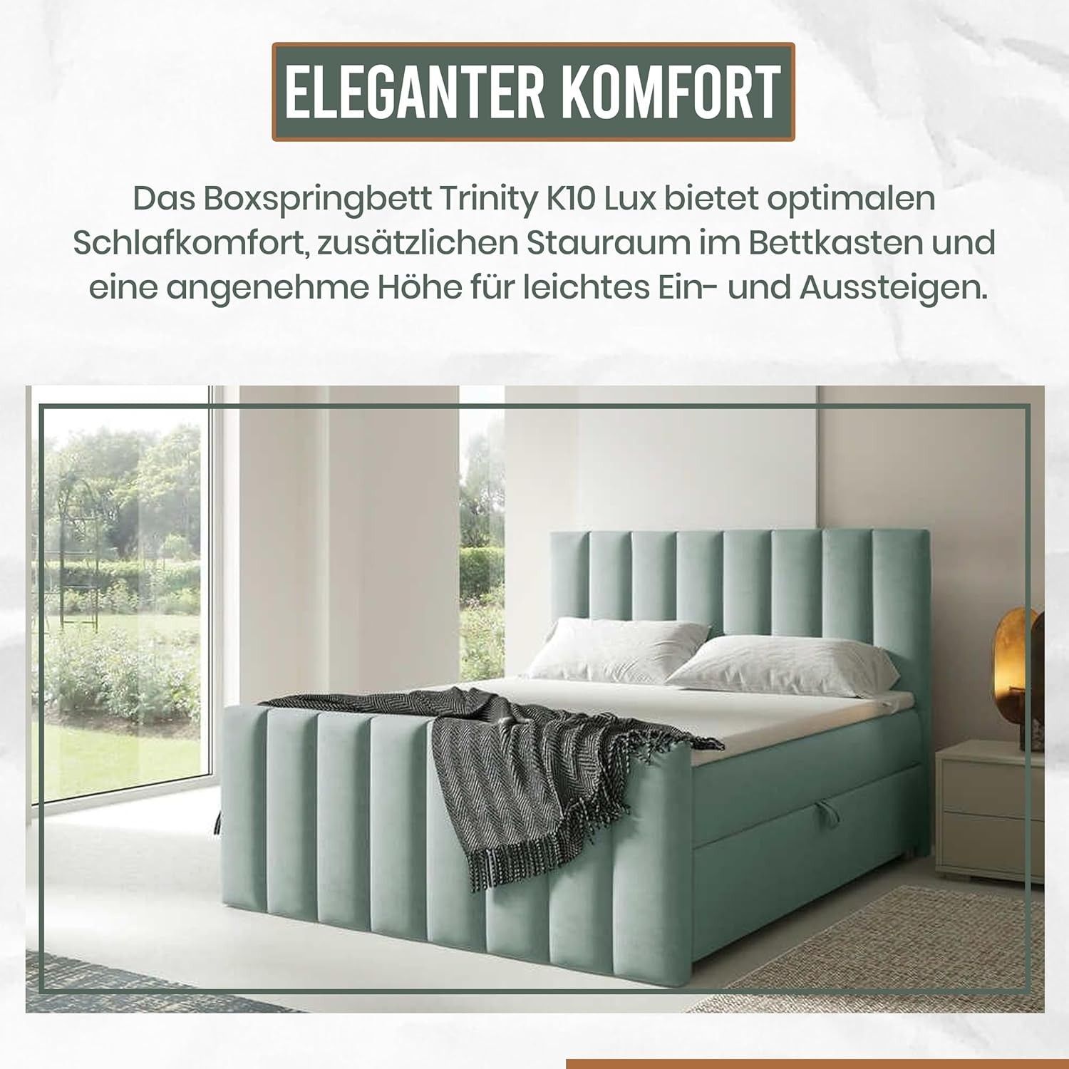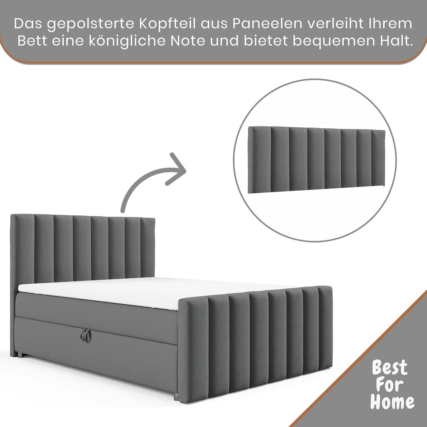 Trinity K-10 Boxspringbett mit Stauraum & 7 cm Topper, Bonellfederkern ,140-200x200cm