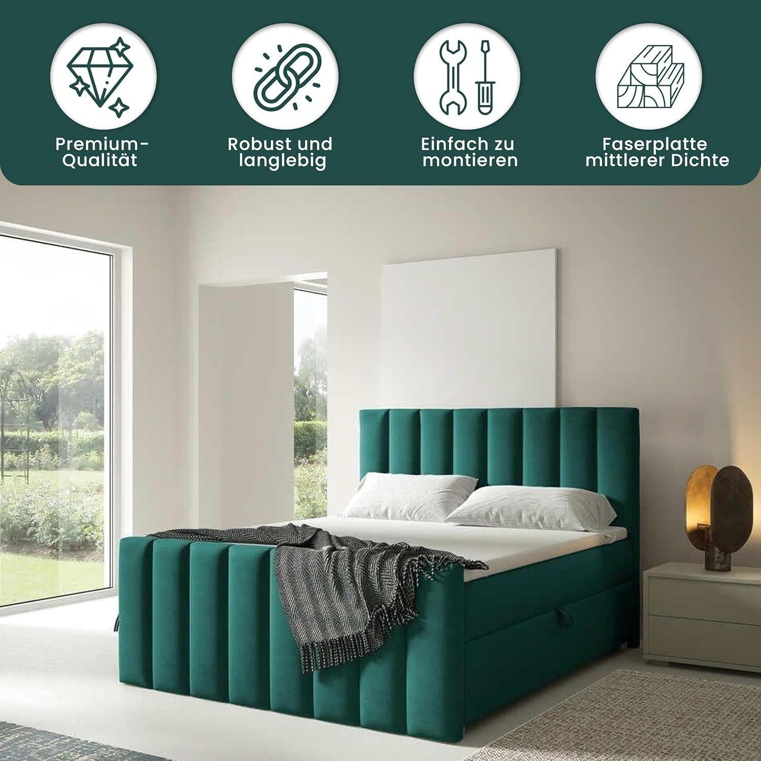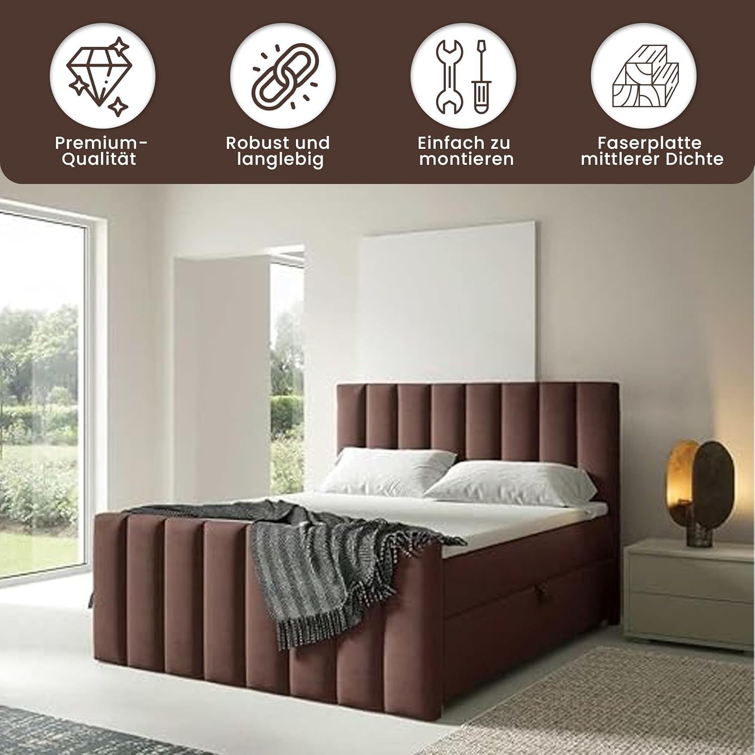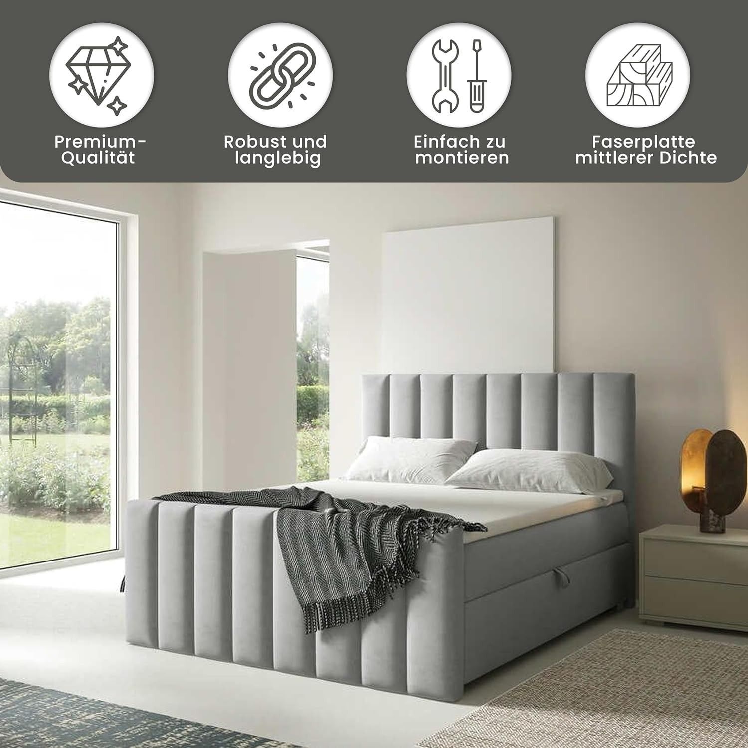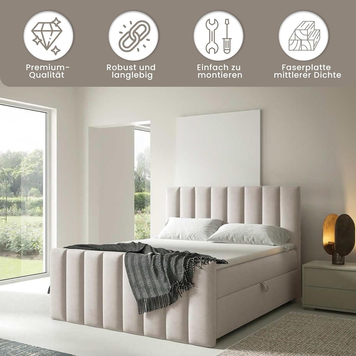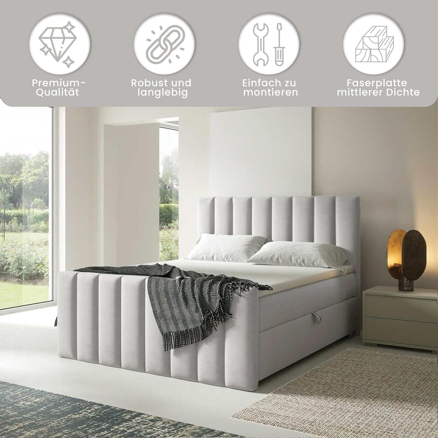 Trinity K-10 Boxspringbett mit Stauraum & 7 cm Topper, Bonellfederkern ,140-200x200cm