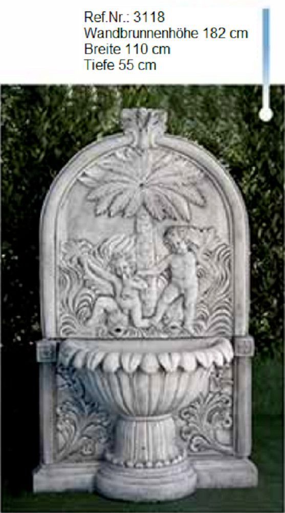 Ein wunderschöner Trinkbrunnen mit ein Relief für einen Wasserauslauf, bestehend aus witterungs- und frostbeständigem Weißstein. Mit einer Pumpe, die das Wasser in einen geschlossenen Kreislauf immer wieder von unten zum oberen Auslauf pumpt und bei uns auch erhältlich ist, hat man eine wunderschöne Wasserfontäne.