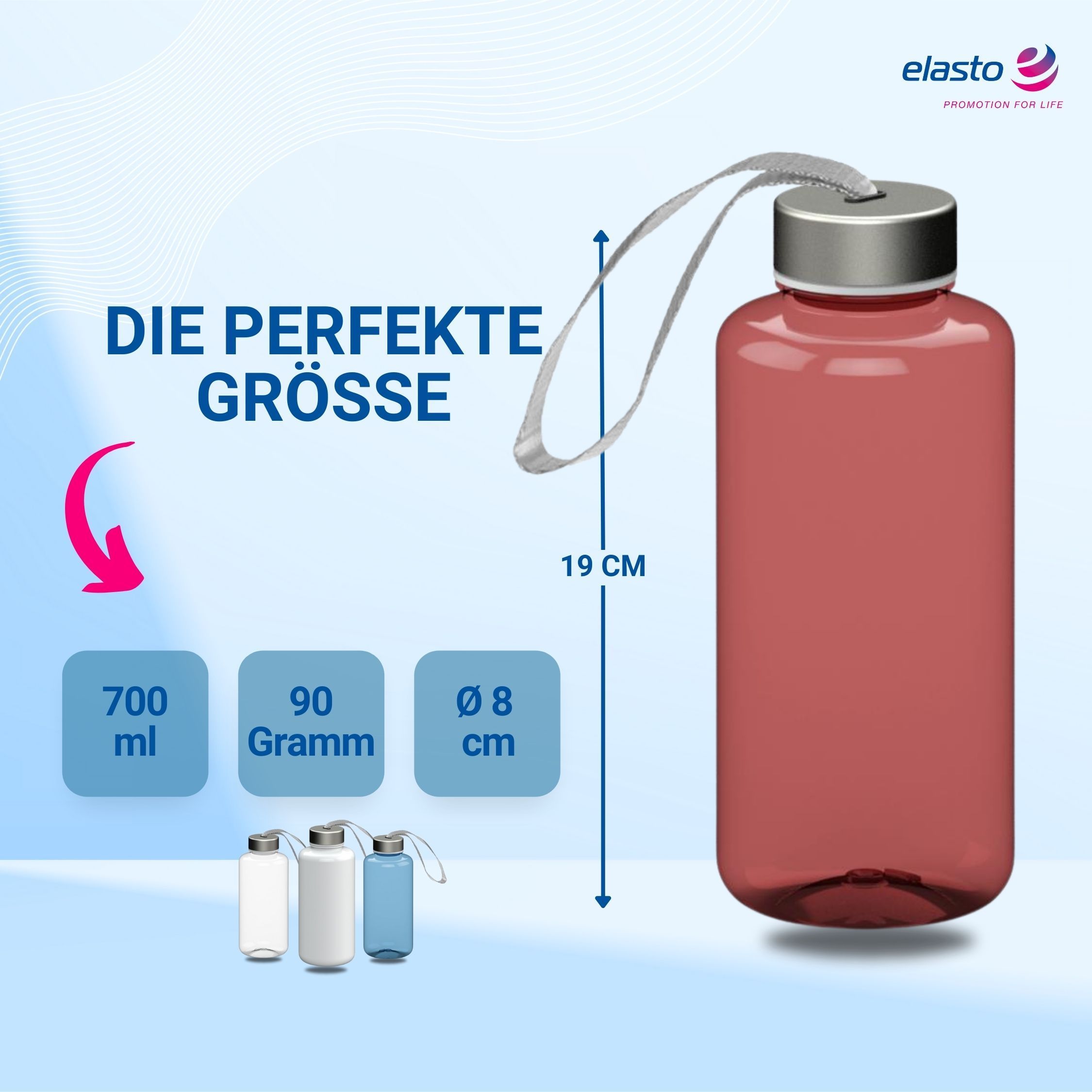 Die Trinkflasche PURE bietet mit einem Füllvolumen von 0,7 Liter die ideale Lösung für Ihre Hydrationsbedürfnisse. Gefertigt aus hochwertigem Tritan und einem Edelstahldeckel, kombiniert sie Haltbarkeit mit stilvollem Design und praktischer Funktionalität. Die Flasche ist nicht nur für stilles Wasse