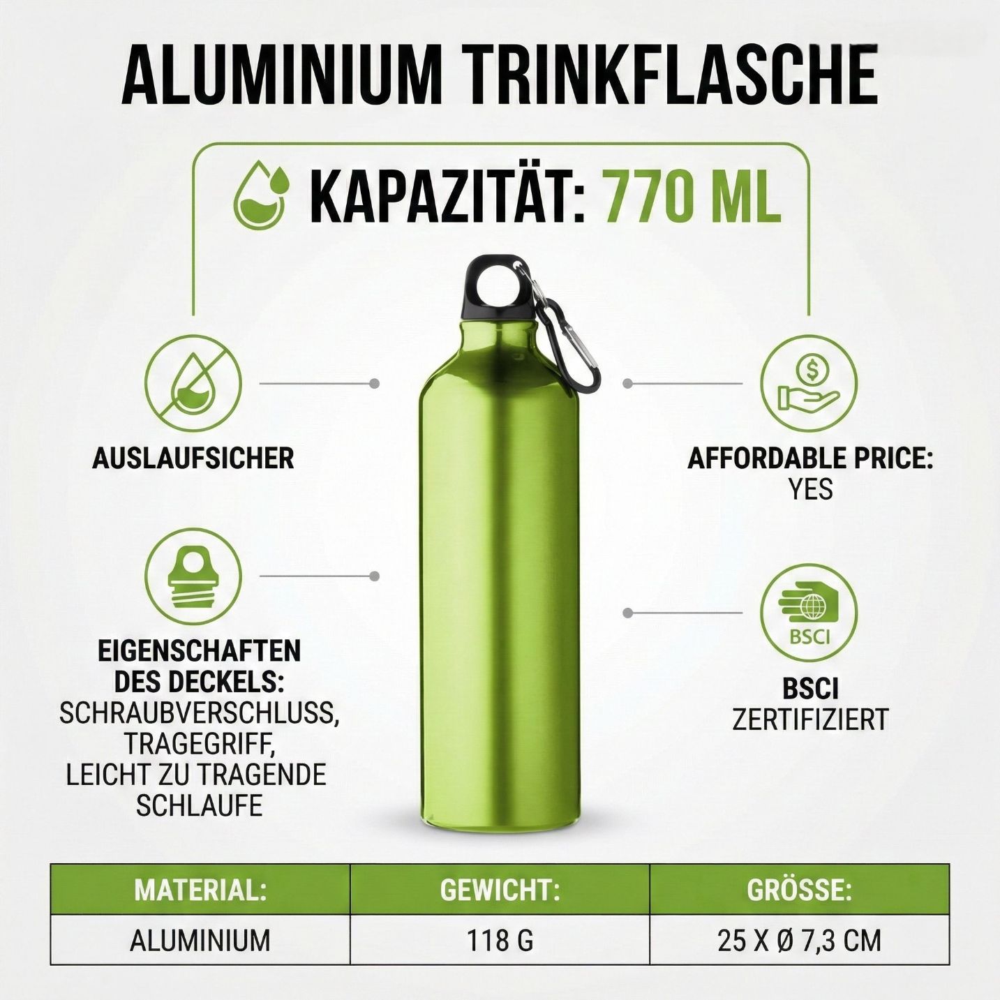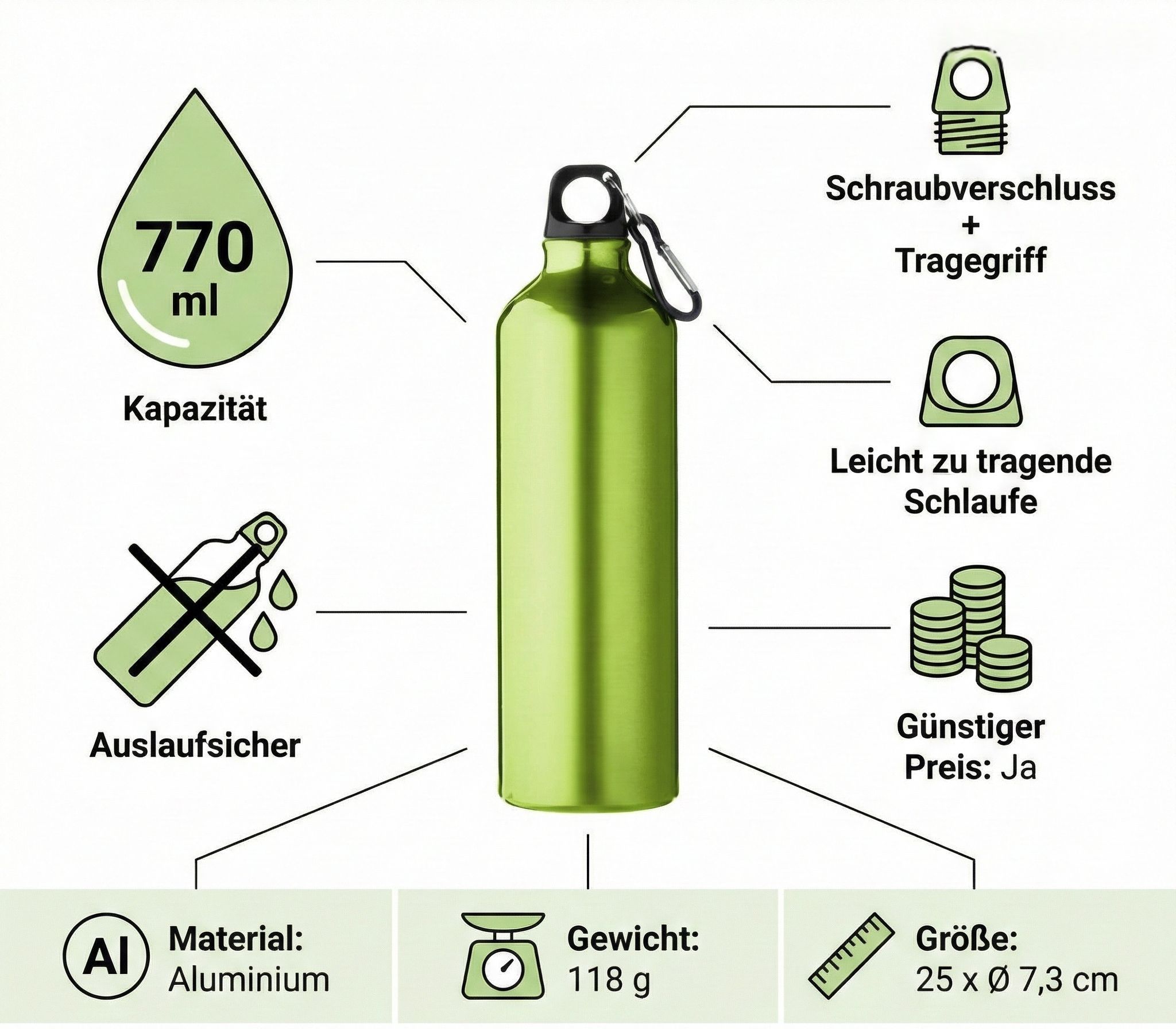 Trinkflasche Alu 770 ml Ultraleicht Schraubverschluss Flasche