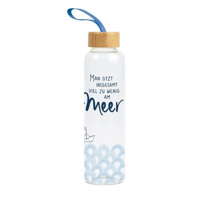 Grafikwerkstatt Trinkflasche aus Glas 550 ml Man sitzt insgesamt viel zu wenig am Mee