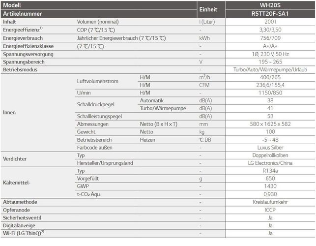 LG Trinkwasser Wärmepumpe LG R134A Therma V 200 Liter Brauchwasserwärmepumpe WIFI