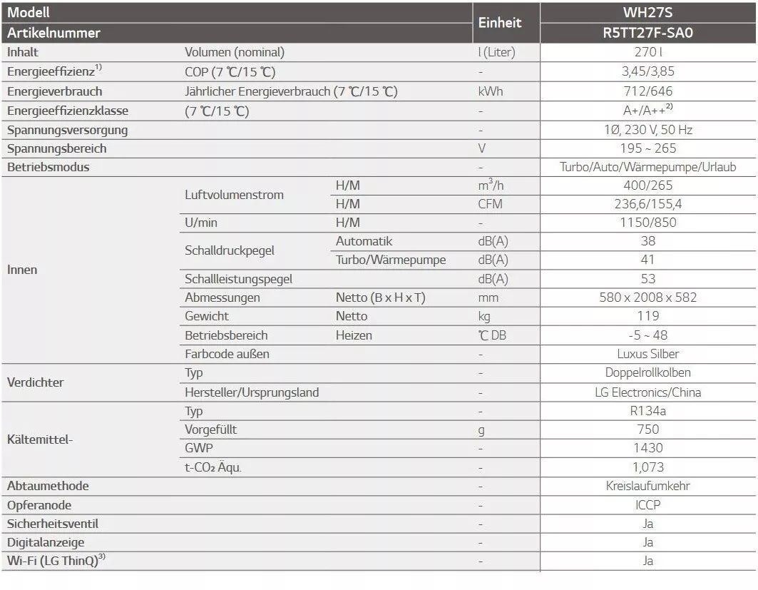 LG Trinkwasser Wärmepumpe LG R134A Therma V 270 Liter Brauchwasserwärmepumpe WIFI