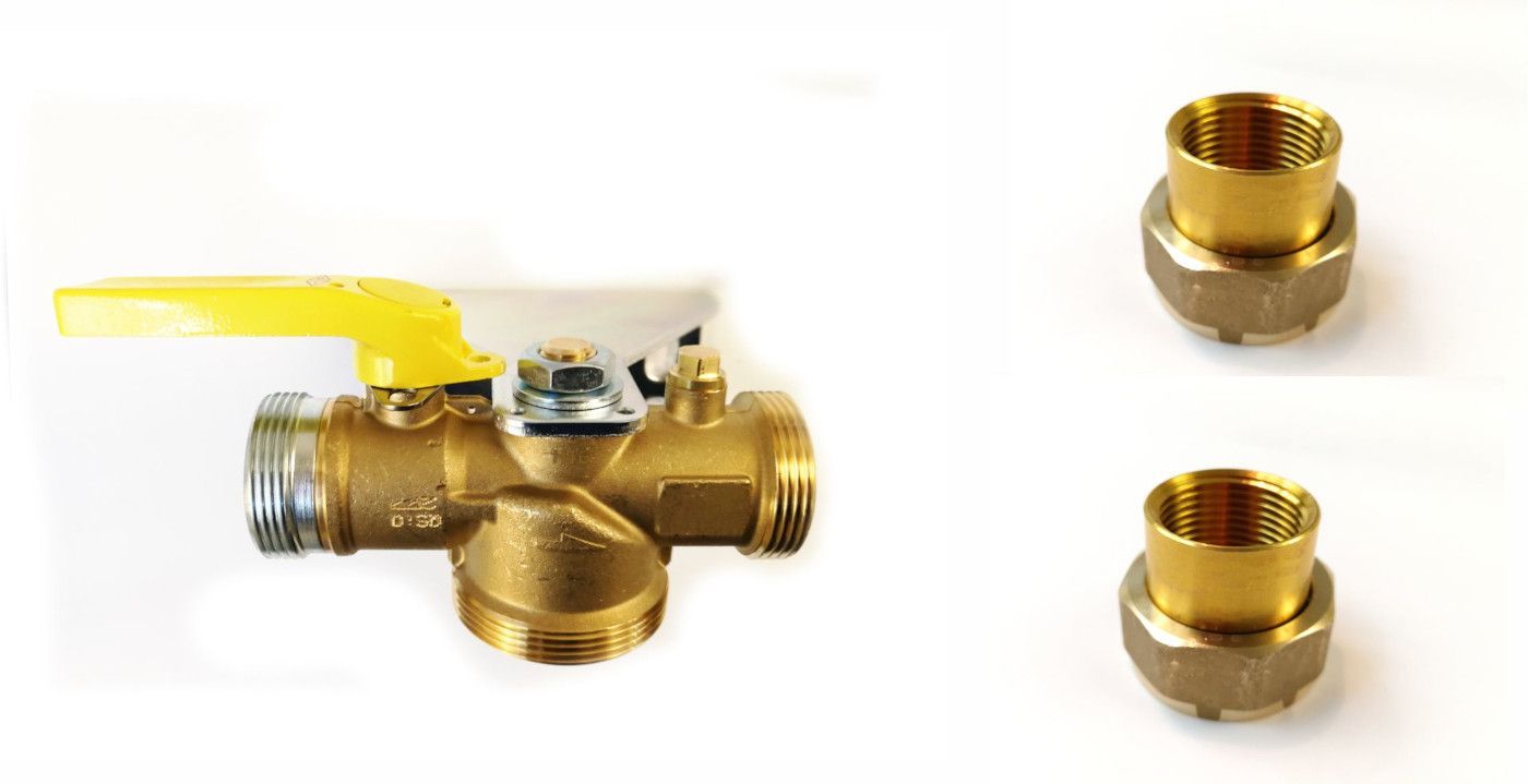 Trinnity Gaszählerkugelhahn für Einrohrzähler mit Montageplatte + Verschraubung