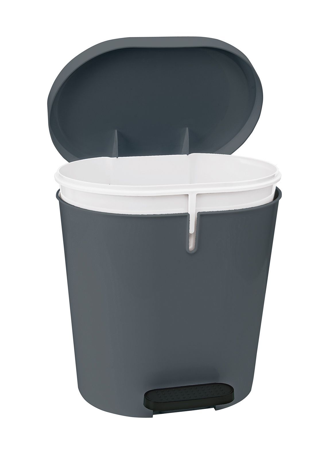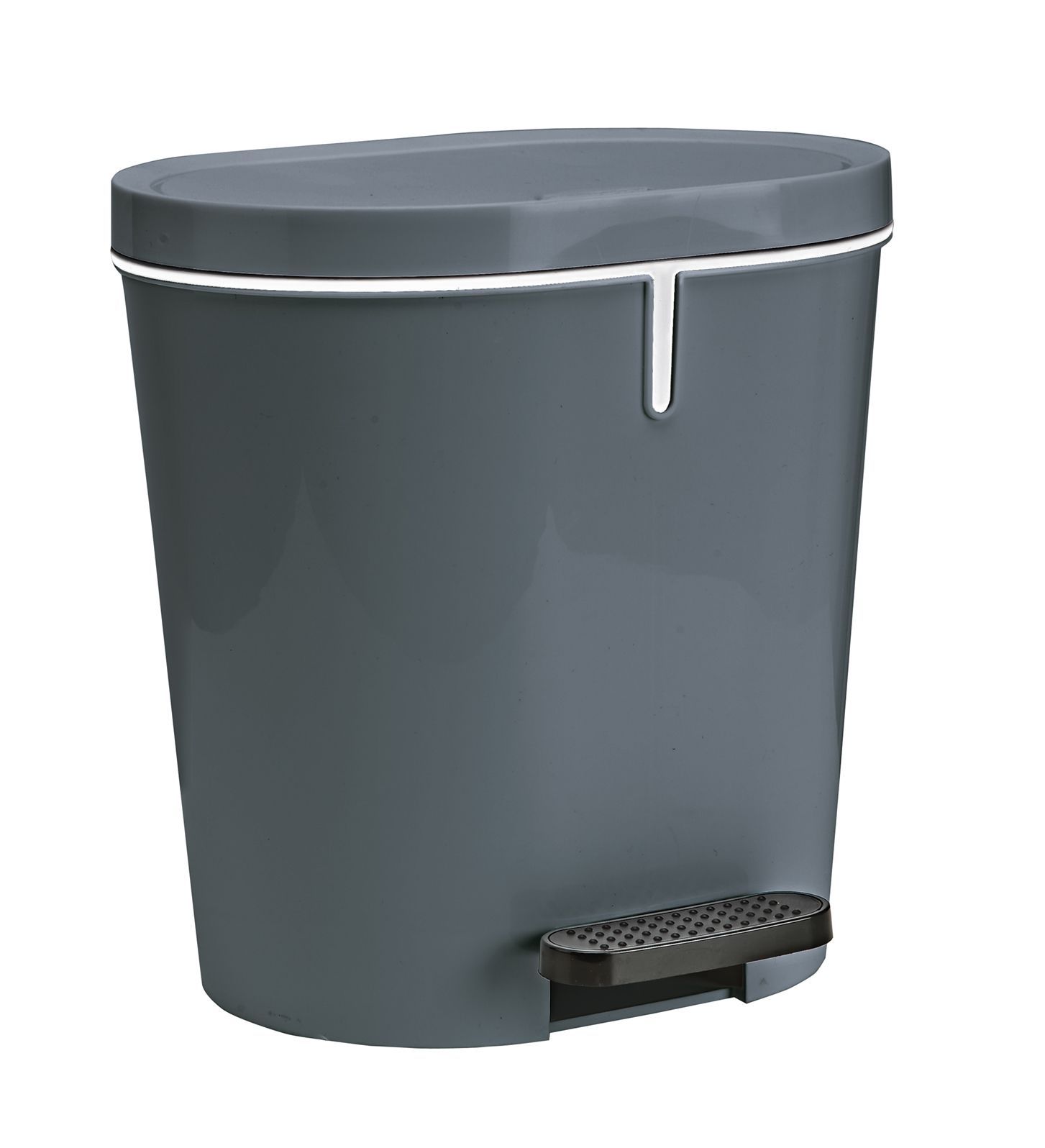Tritt-Mülleimer oval aus Kunststoff 8 Liter in Grau