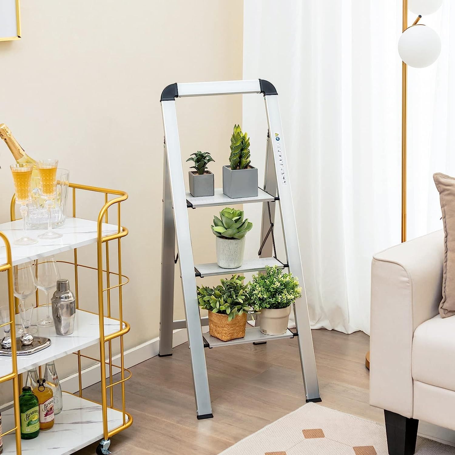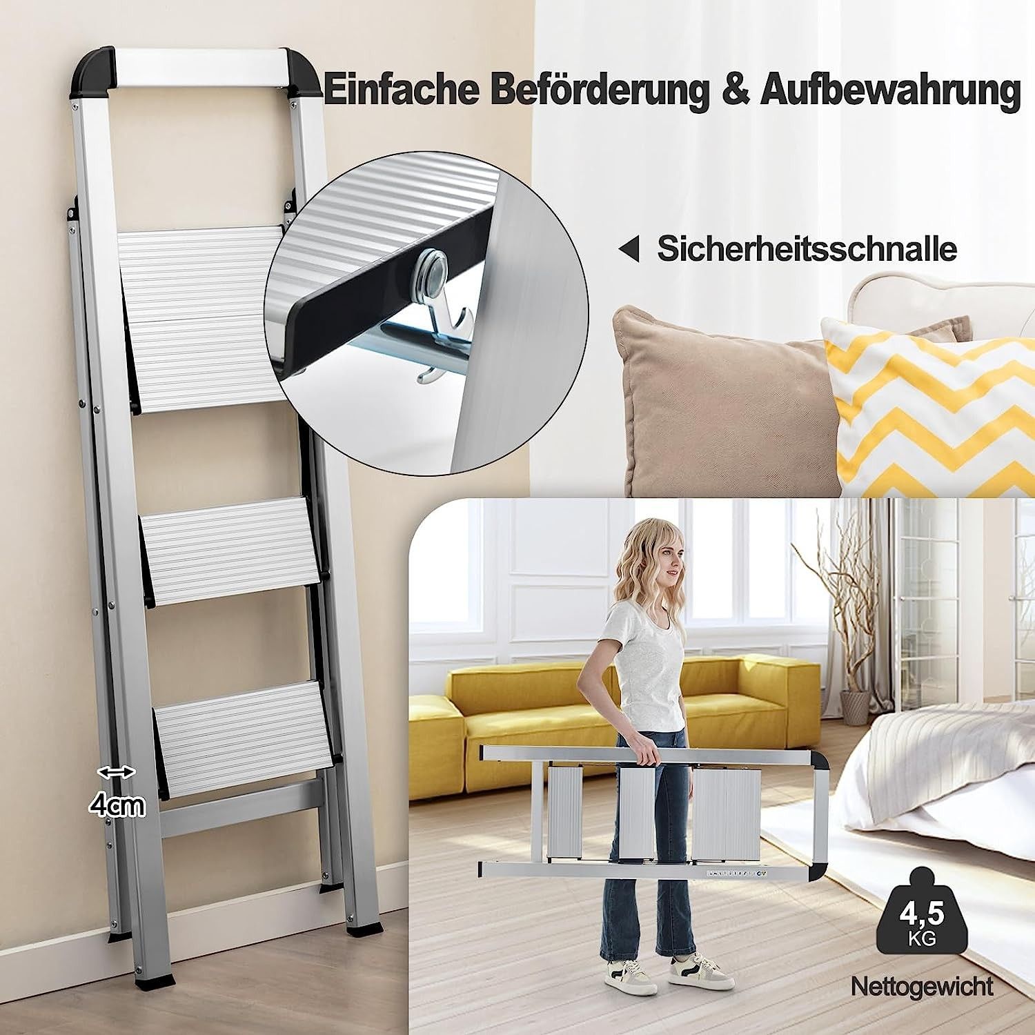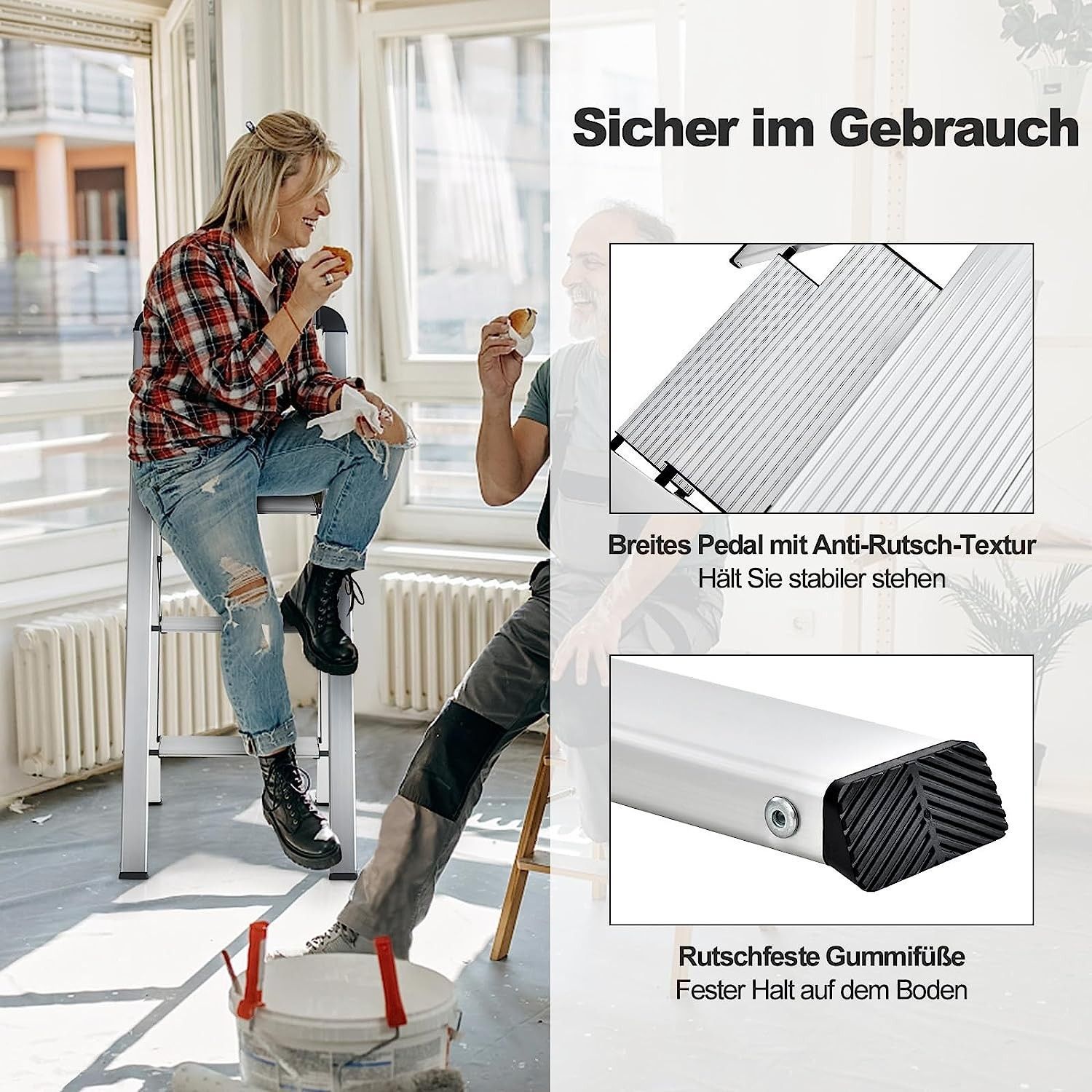 Trittleiter 3 Stufen Stehleiter, Aluminium Klappleiter bis 150 kg, Haushaltsleiter