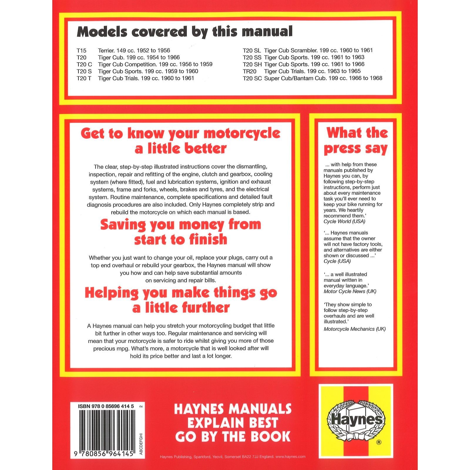 Triumph Motorrad Tiger Cub und Terrier (1952-1968) Reparaturanleitung Haynes