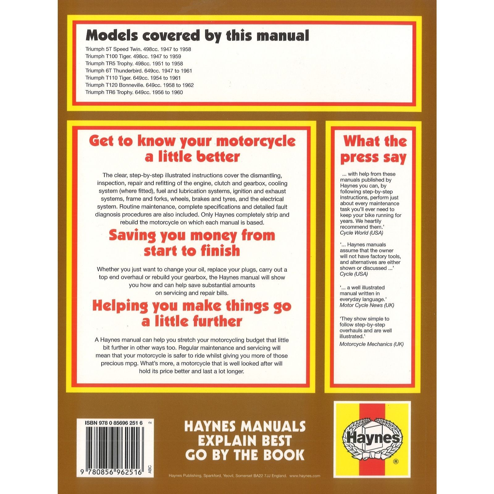 Triumph Pre-Unit Twins 498cc 649cc 1947-1962 Motorrad Reparaturanleitung Haynes
