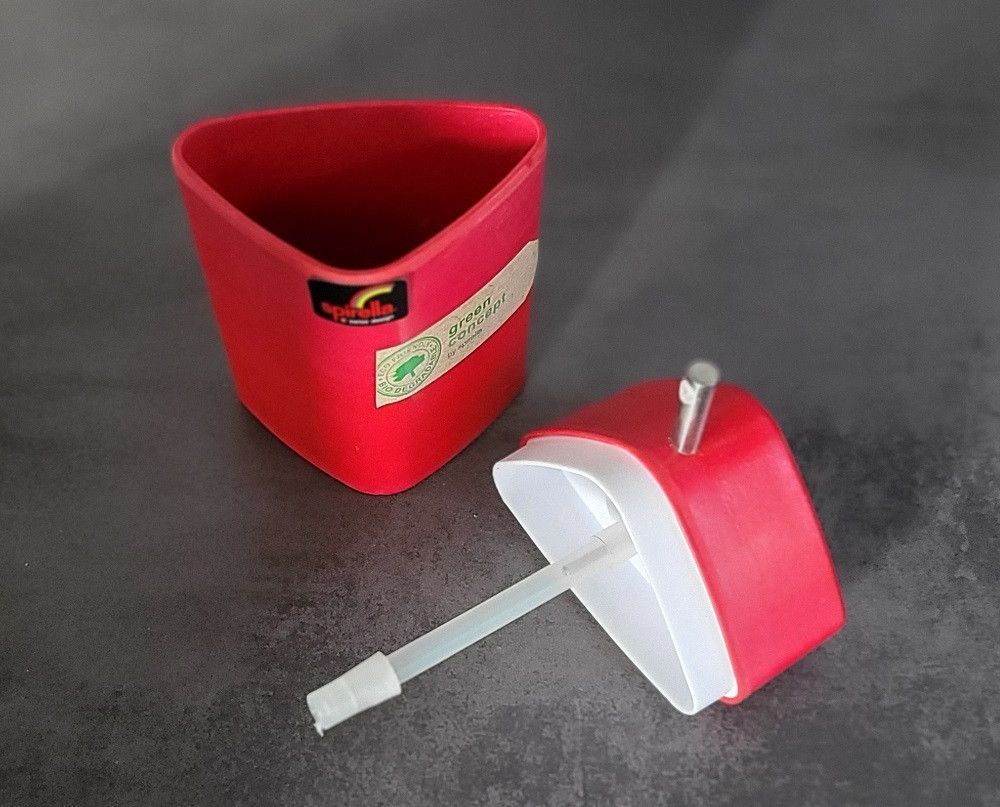 Trix Eco Seifenspender/ Soap Dispenser Rot/ Red. Dreieck-Design. Aus Bambushäcksel