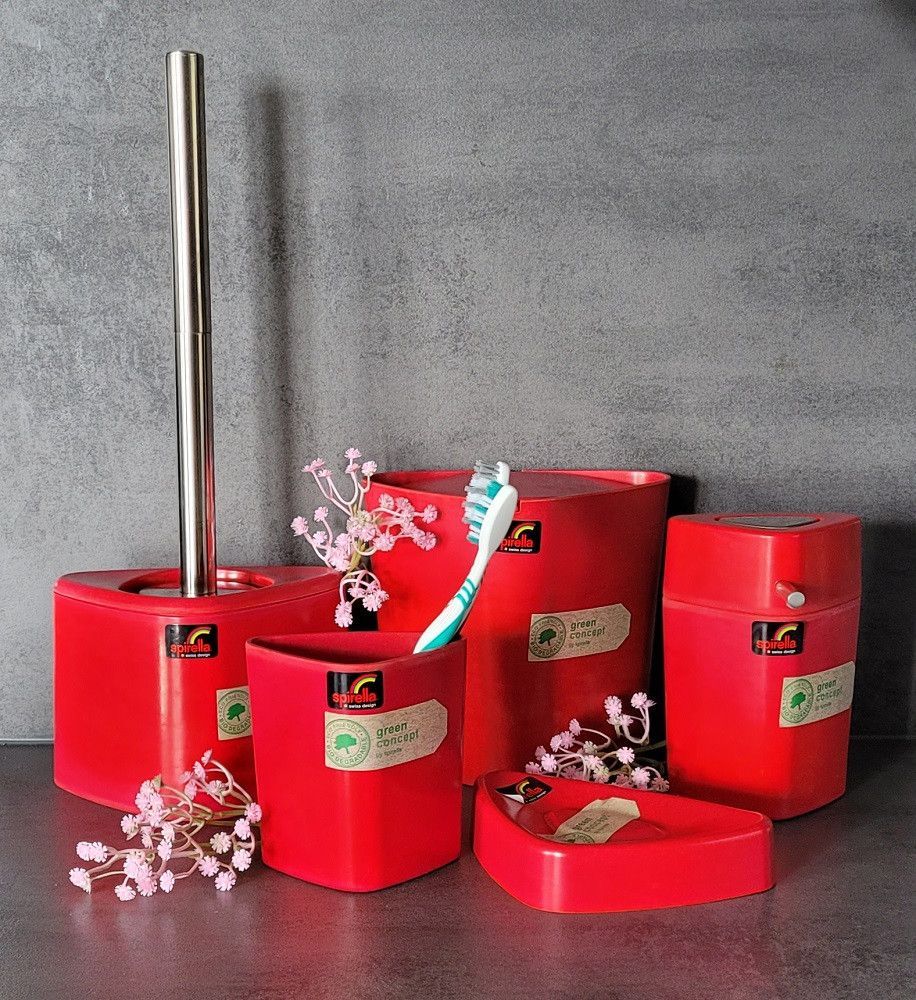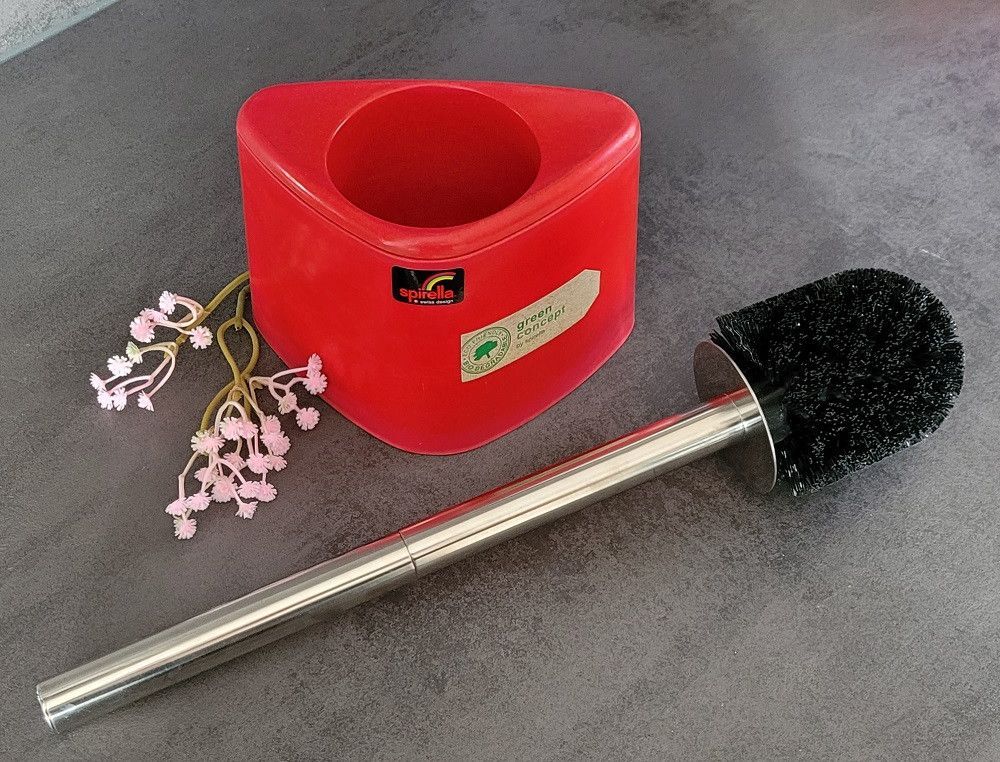 ***Achtung: dies Model in Farbton Rot nicht geeignet für sehr feuchte Räume oder ständige Kontakt mit Wasser. Es kann zur schnellere biologisch Abbau führen!*** Spirella Trix Eco WC Bürstengarnitur Rot. Eco Freundlich. Dreieck-Design. Spirella Green concept: aus pflanzlichen Nebenprodukten (Bambushä... Mehr