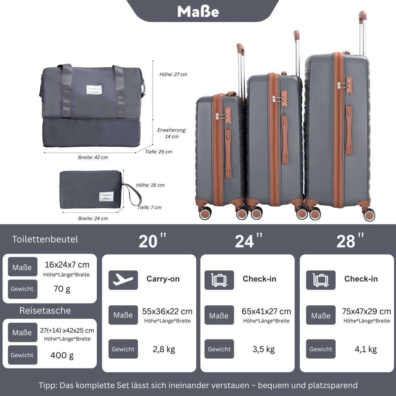 Trolleyset Koffer-Set M, L, XL + Schulranzen, Kosmetiktaschenset Hartschalen-Koffer