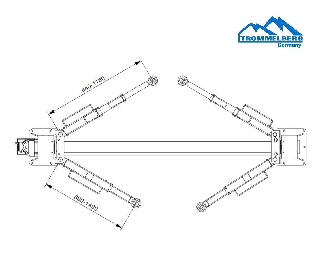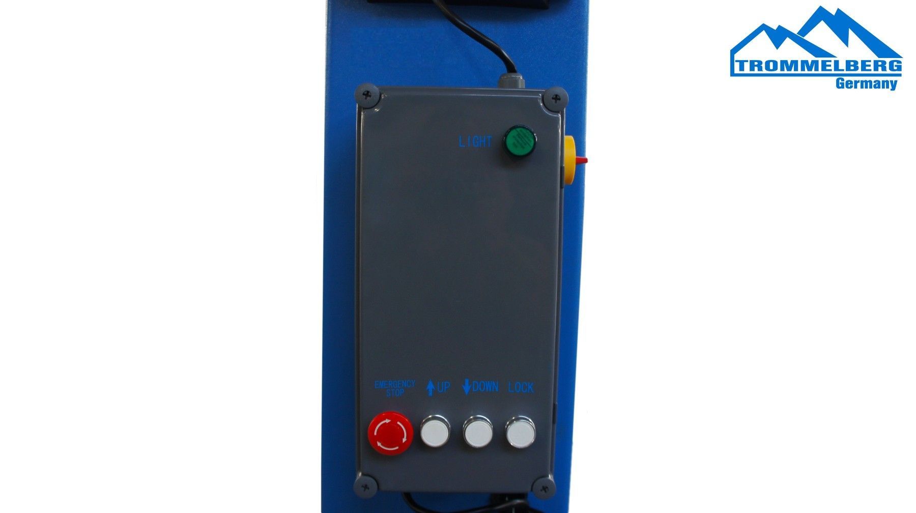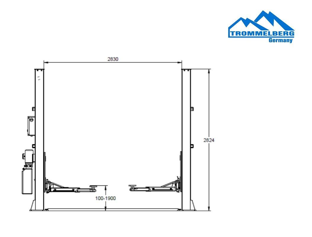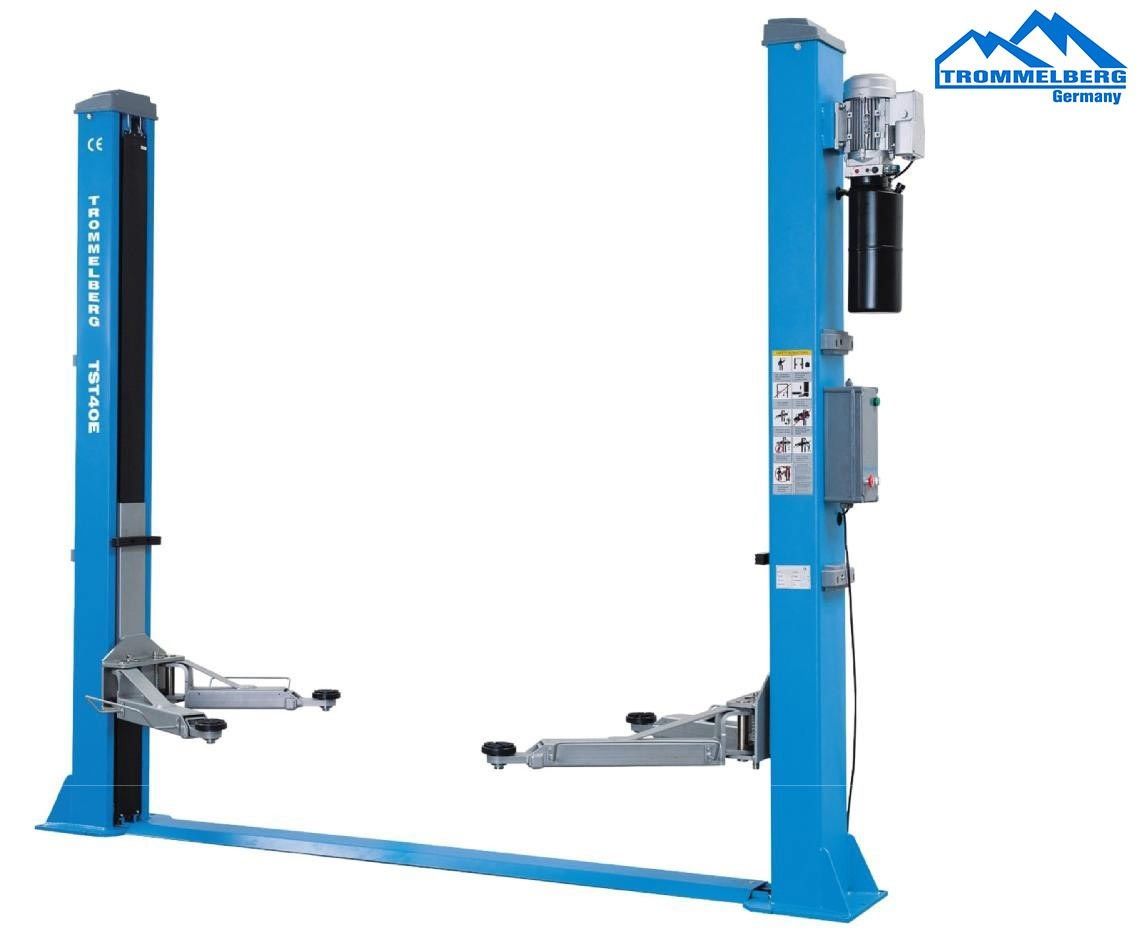 Entladung erfolgt durch Käufer - Gabelstapler benötigt! - Elektrohydraulische 2-Säulenhebebühne für Fahrzeuge bis 4 t Elektrohydraulische Hebebühne für Fahrzeuge bis 4 t. Inklusive CE-zertifiziertem Sicherheitssystem. Mit niedriger Synchronisation. Eigenschaften • Asymmetrische Tragarme – für optima