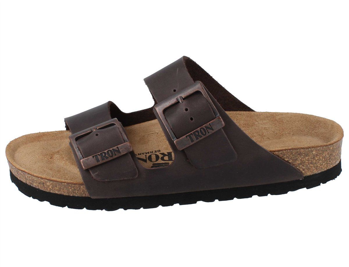 TRON Pampelonne normal Damen Herren Tieffußbett Pantolette dunkelbraun Nubukleder
