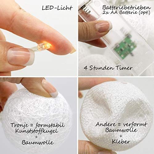 Tronje Tronje LED Baumwollkugeln Kugel-Lichterkette 4h-Timer Lichterkugeln Leuchtkugeln