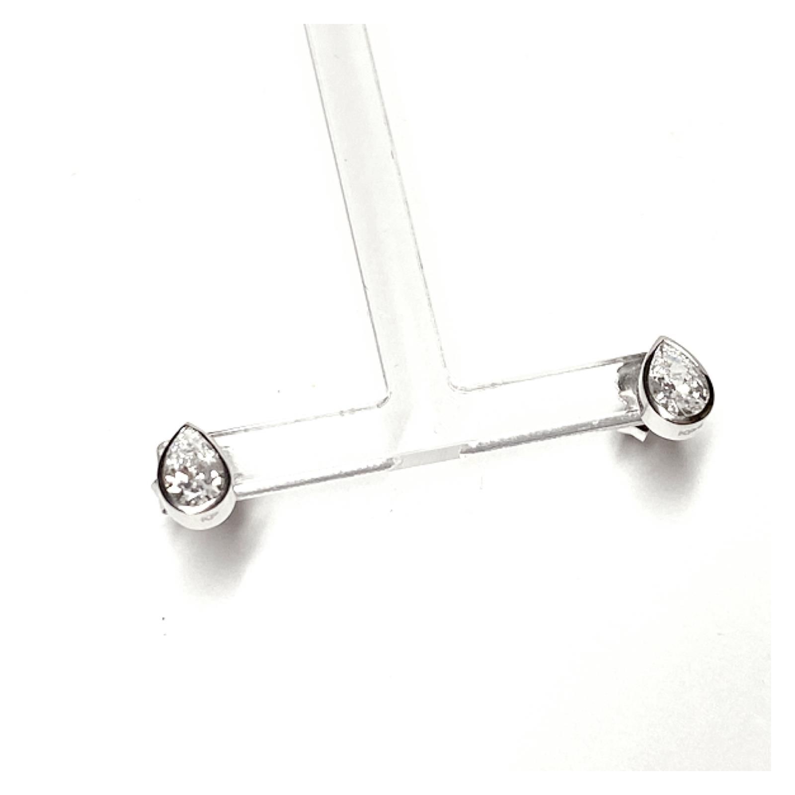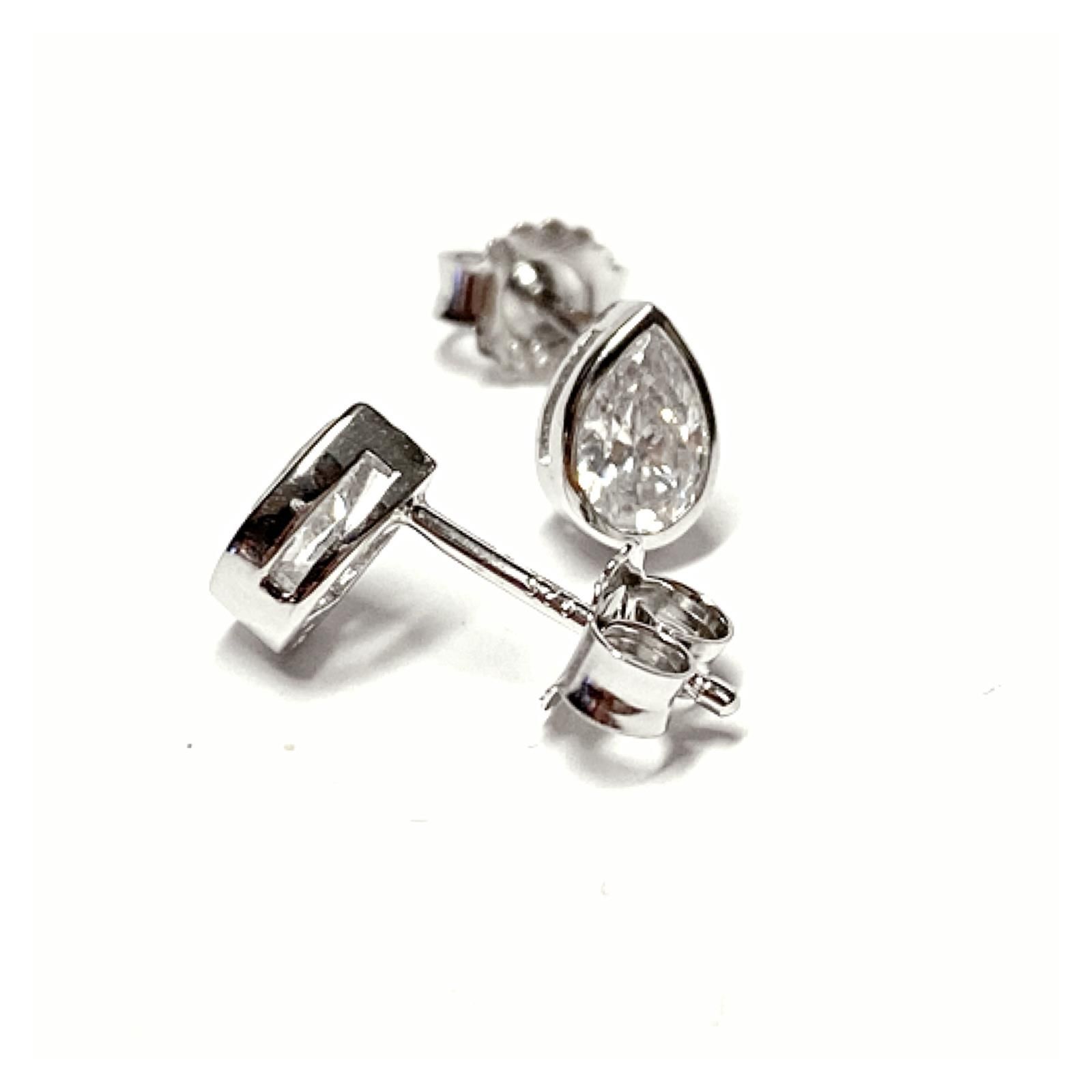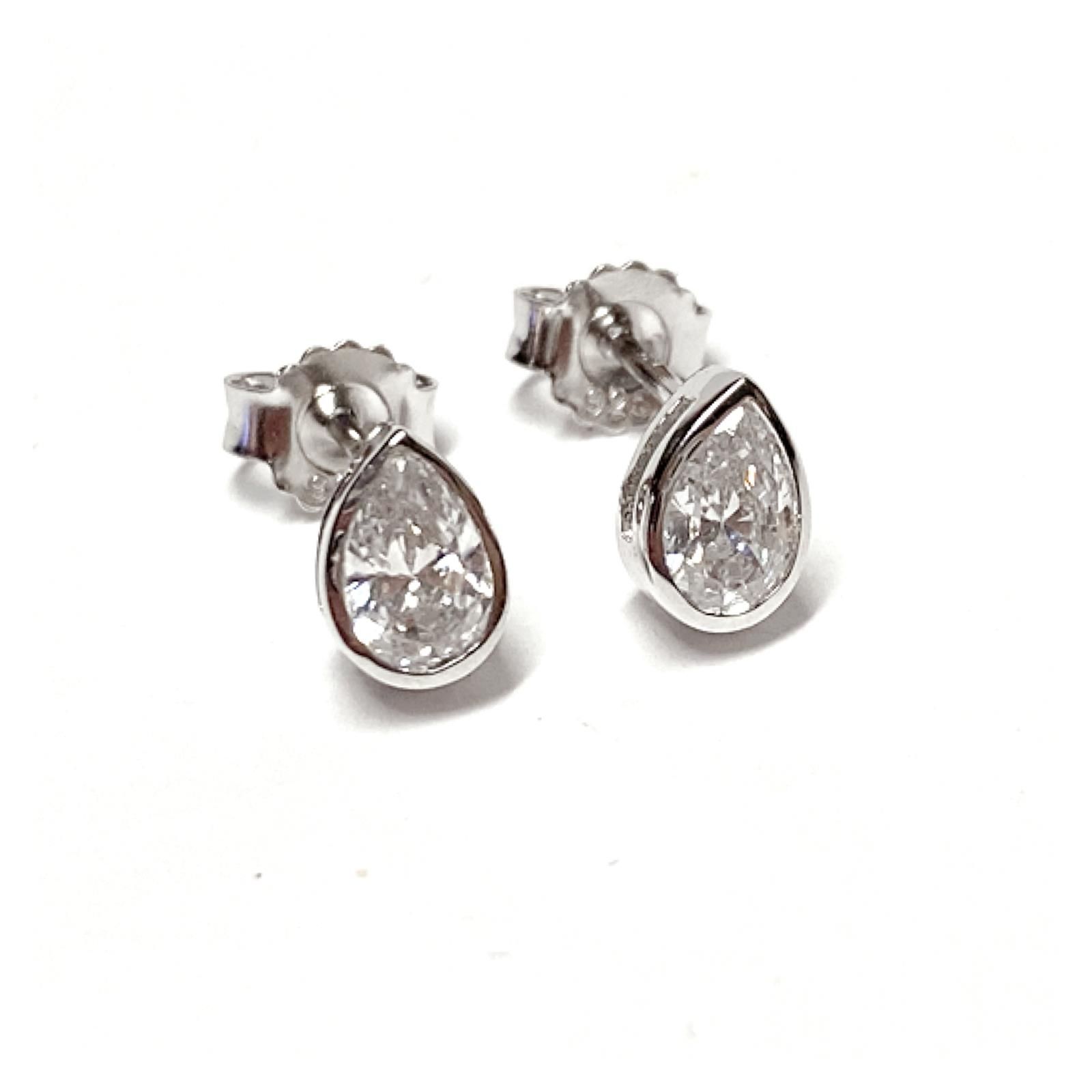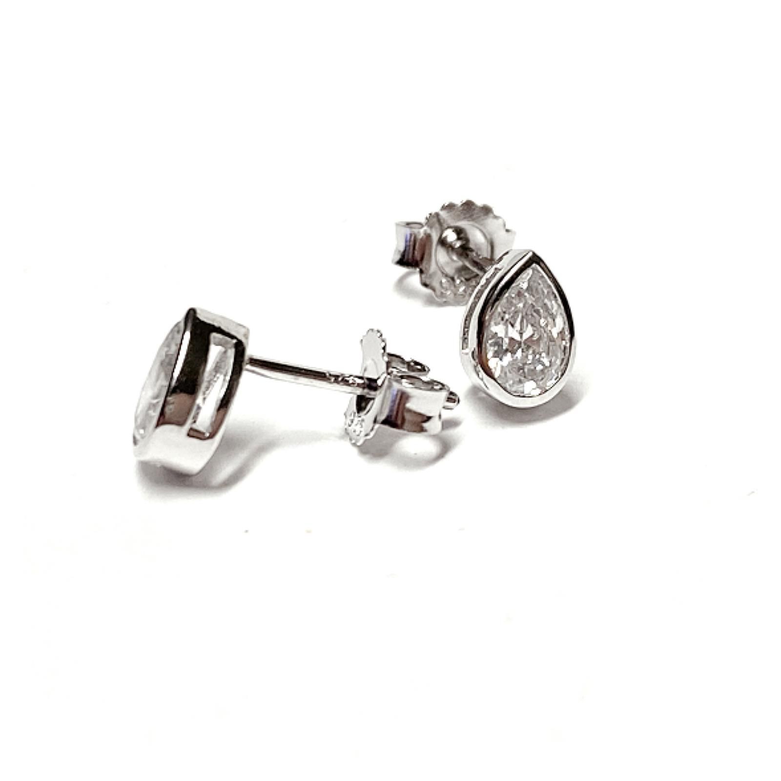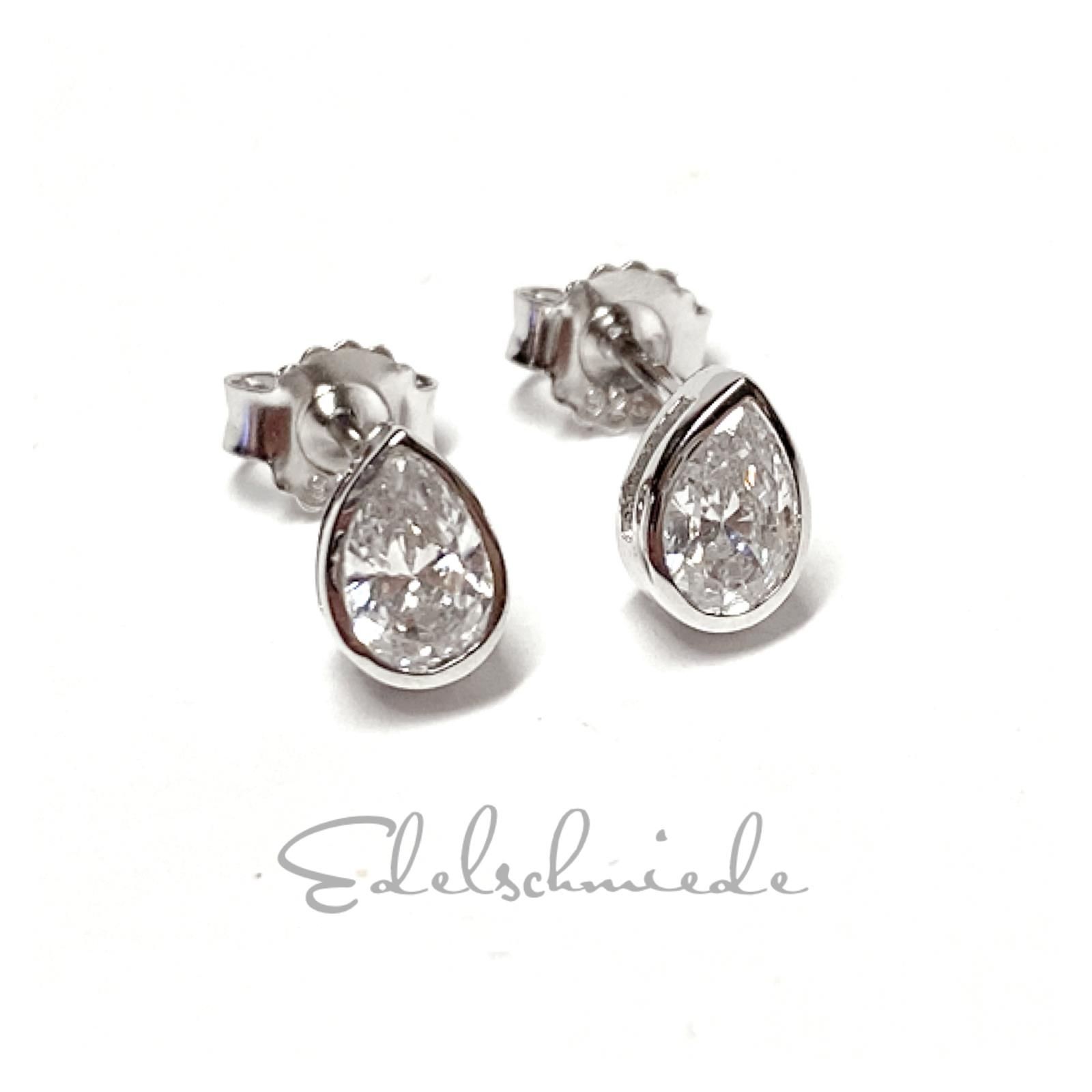 tropfenförmige Ohrstecker 925 Silber rhod. mit Zirkonia Klassiker