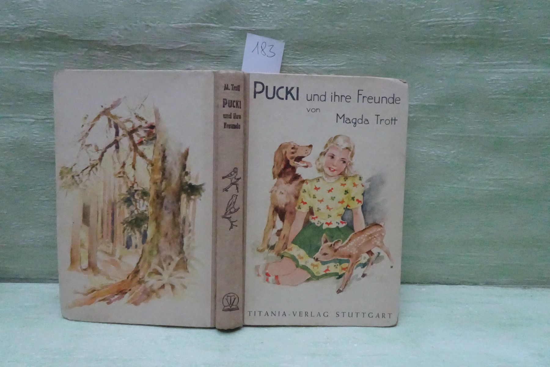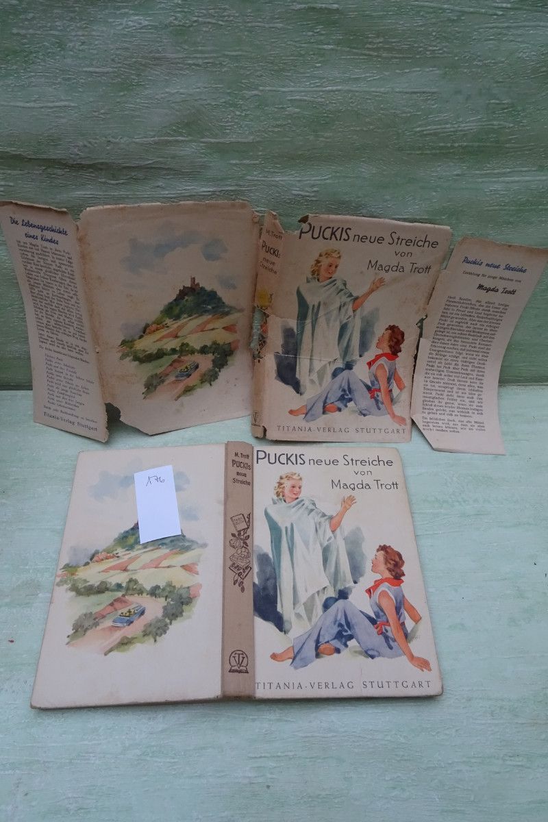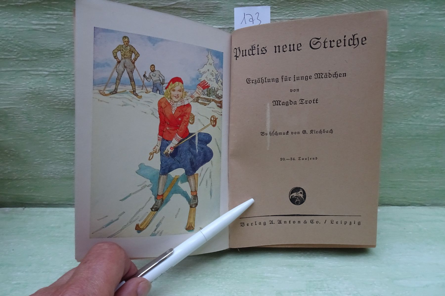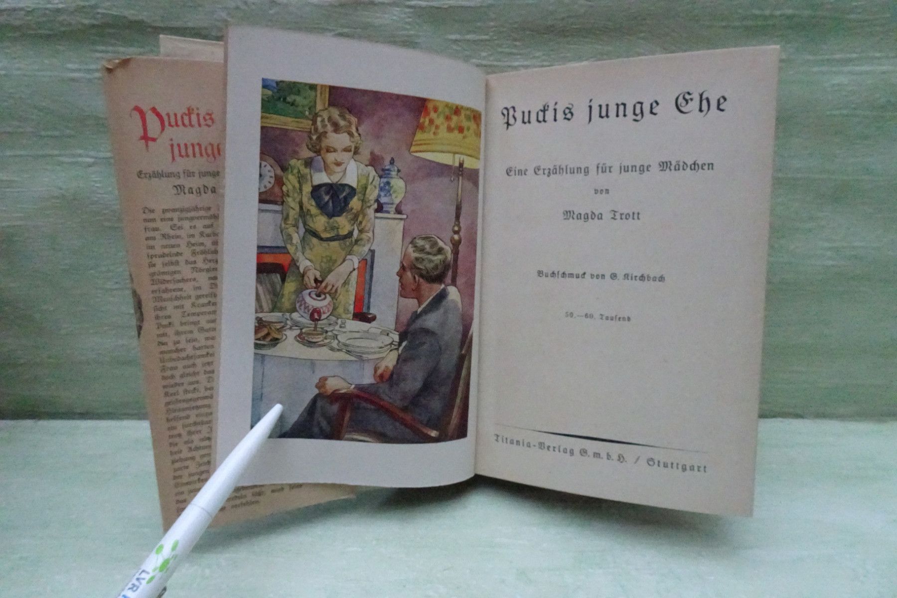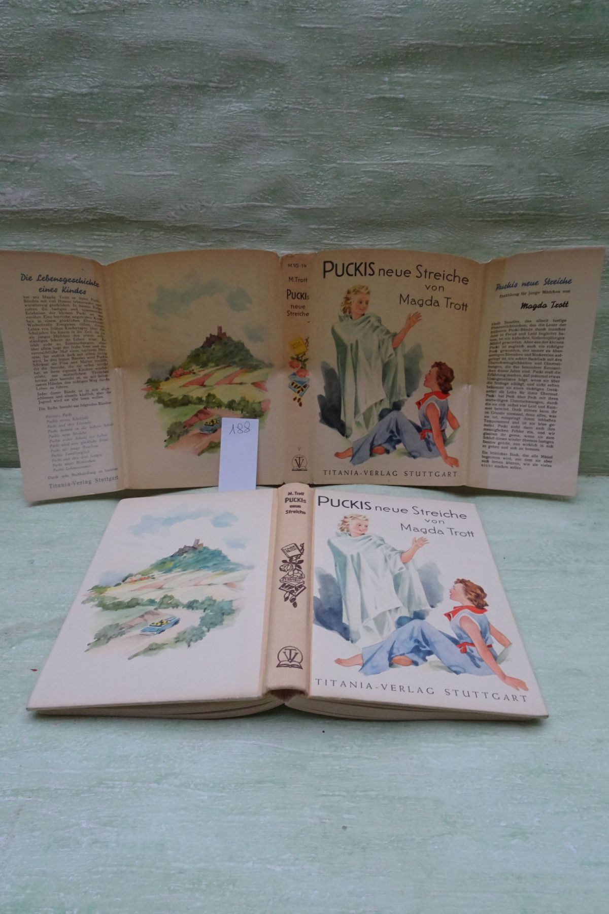 Jugend- & Kinderbücher ... Erinnerungen ..... Magda Trott Pucki -Auswahl- Titania Verlag Stuttgart . . alte Pucki Bände , alle mit Vollbild vorne . 172: Puckis neue Streiche Buchschmuck G Kirchbach Frakturschrift , 35.-44. Tausend , Fadenbindung Titania Verlag GmbH , Stuttgart Zustand : gut . 17
