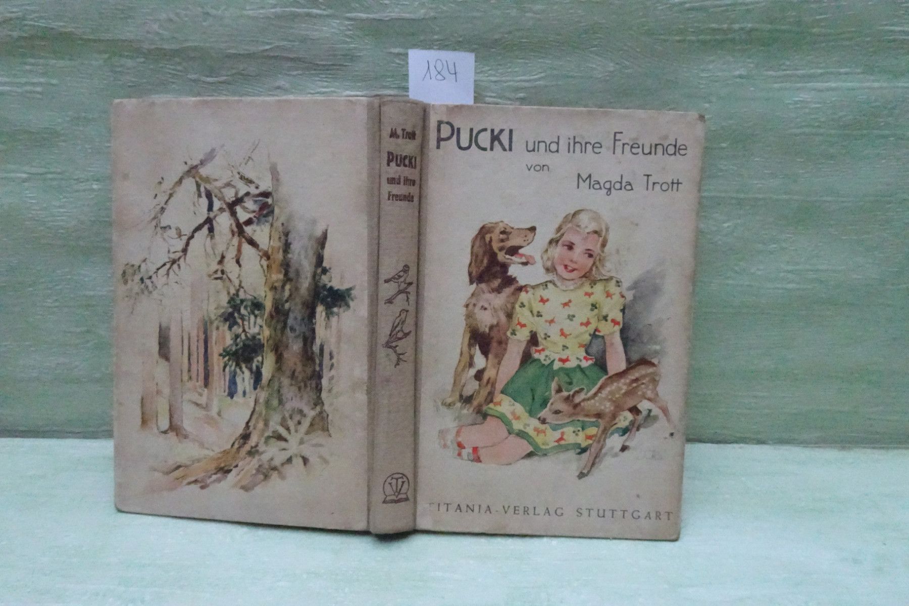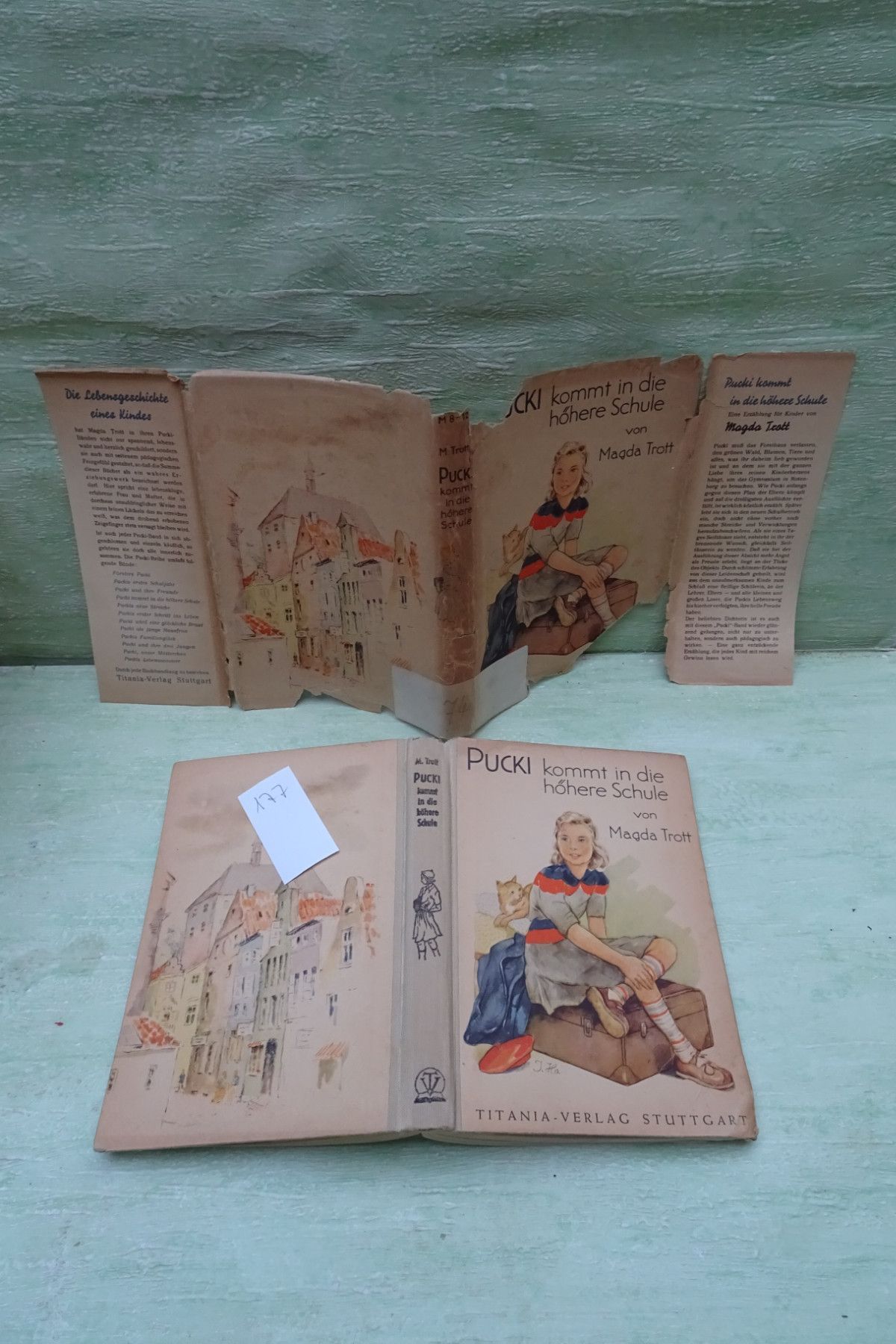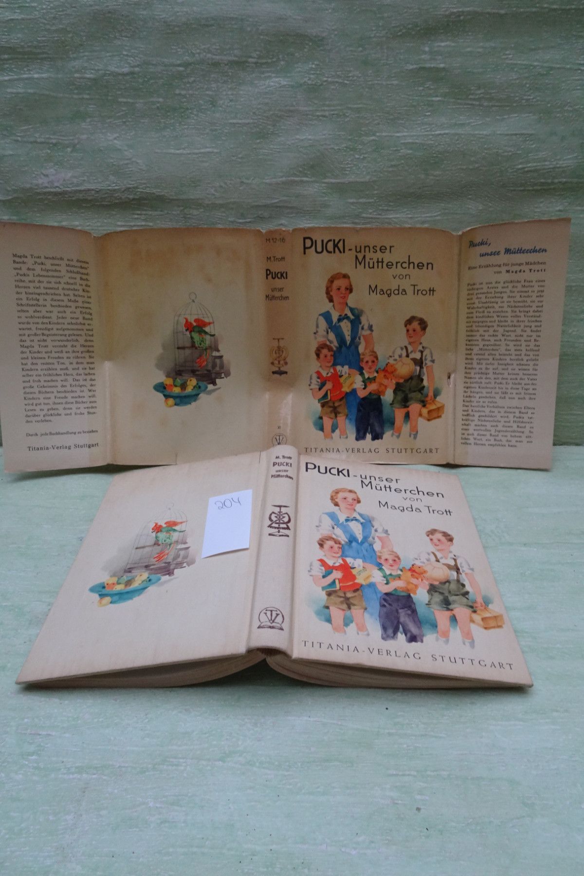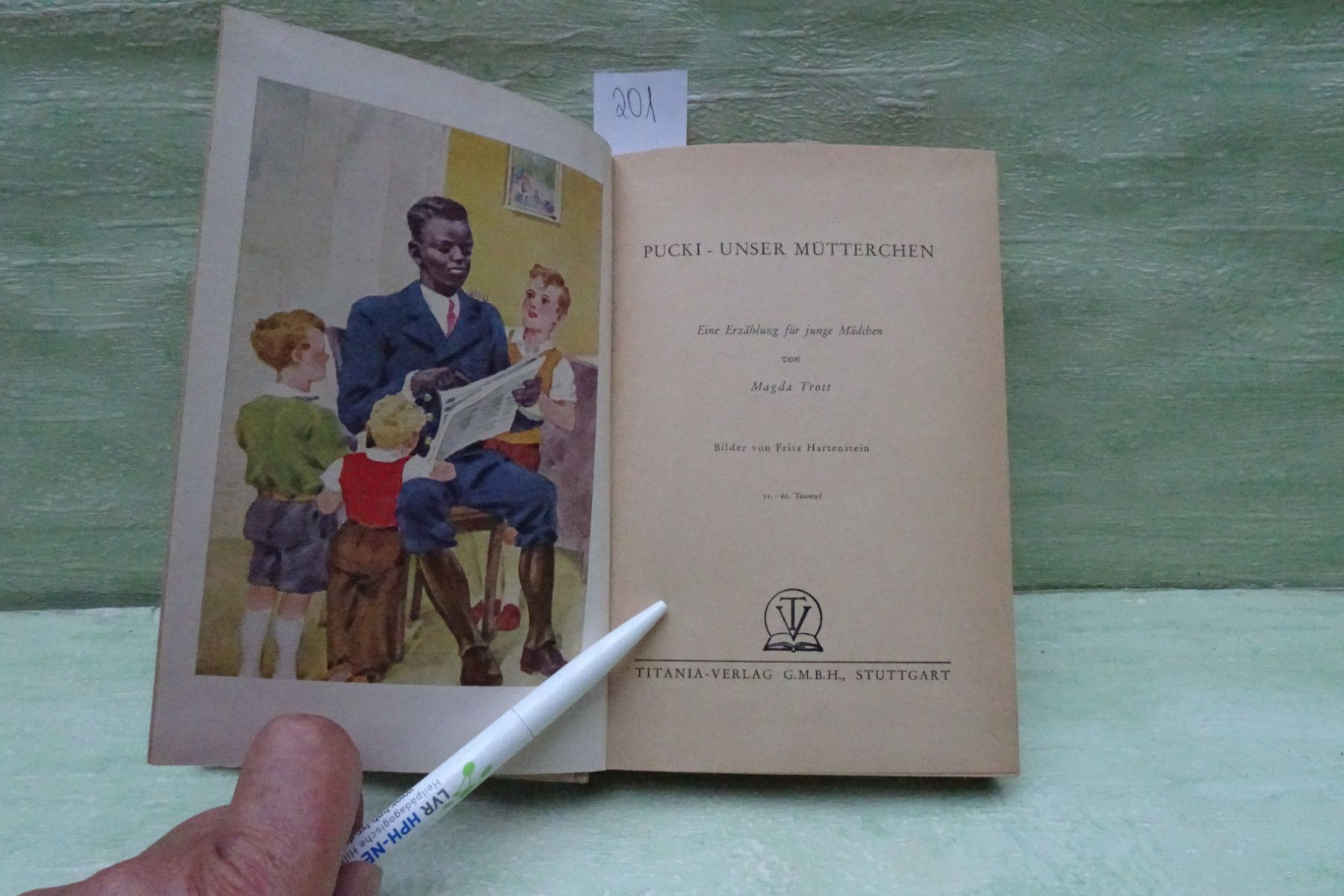 Jugend- & Kinderbücher ... Erinnerungen ..... Magda Trott Pucki -Auswahl- Titania Verlag Stuttgart . . alte Pucki Bände , alle mit Vollbild vorne . 172: Puckis neue Streiche Buchschmuck G Kirchbach Frakturschrift , 35.-44. Tausend , Fadenbindung Titania Verlag GmbH , Stuttgart Zustand : gut . 17